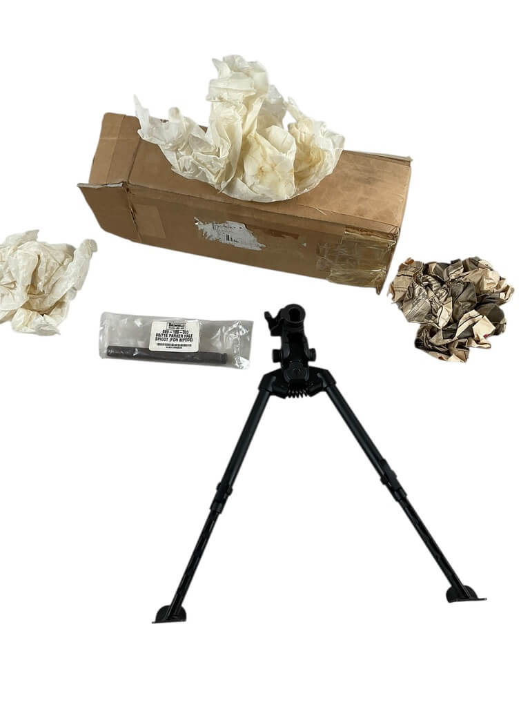 The ‘British Parker Hale Bipod New In Box’ is a piece of military-grade equipment, renowned for its superior quality and durability. It is a sturdy, lightweight bipod designed for precision shooting and offers optimal stability to the user. This British-made product is crafted with utmost attention to detail by Parker Hale, a reputable manufacturer renowned for their high-quality firearms and accessories. The bipod is brand new, encased in its original packaging, ensuring its untouched, pristine condition. It features adjustable legs that can be tailored to suit various terrains and shooting positions. This bipod is ideal for both professional shooters and hobbyists, providing a significant advantage in accuracy and stability. It’s a testament to Britain’s rich tradition of manufacturing robust and reliable shooting equipment.
