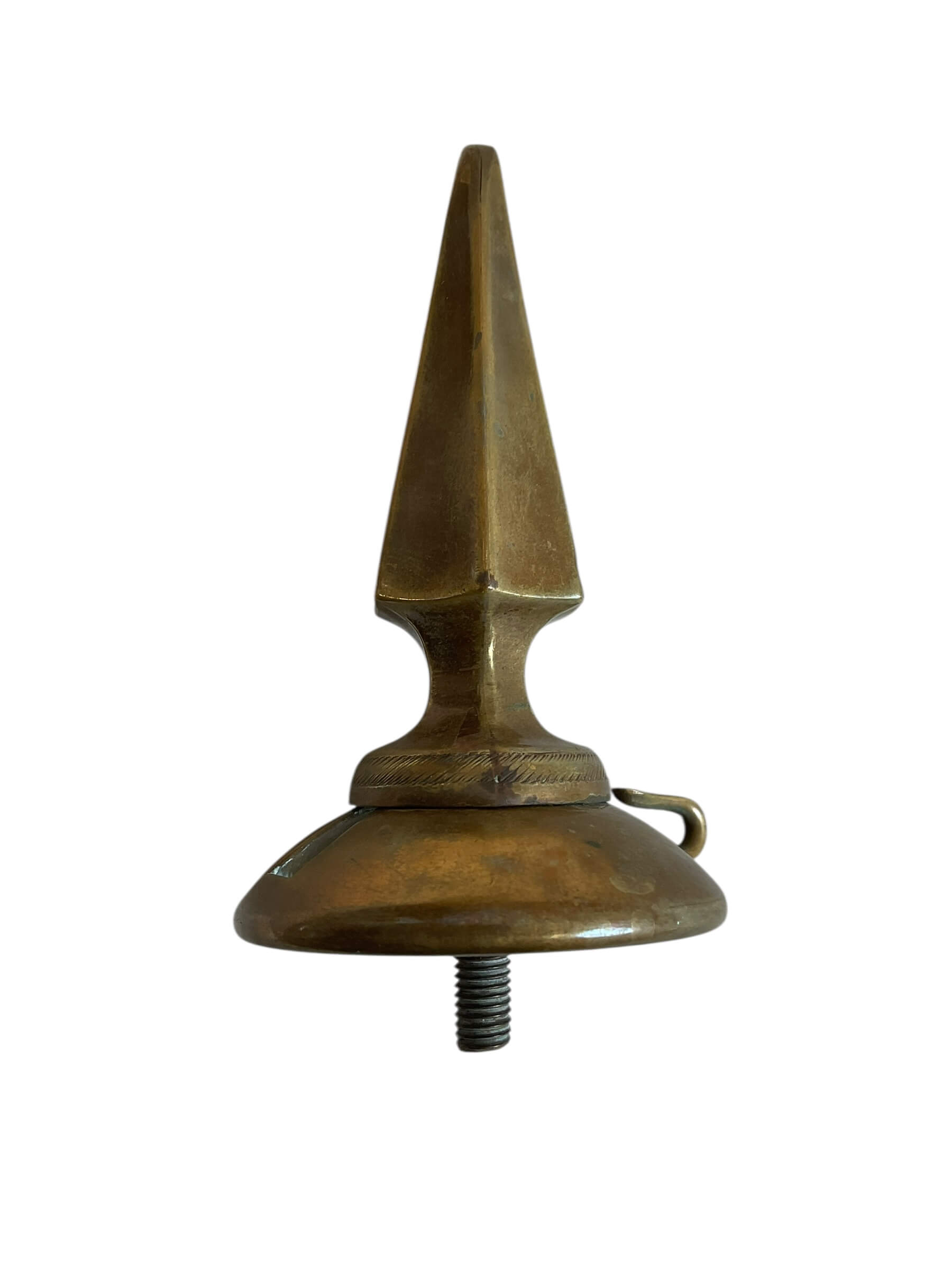 The British Pith Helmet Spike and Base are components traditionally fitted to the top of British military pith helmets, also known as sun helmets, used primarily during the 19th and early 20th centuries. The spike is typically constructed from brass and designed to screw securely into the matching base plate, providing both a decorative and recognizable feature of the helmet’s silhouette. The base is affixed through the helmet’s crown, holding the spike in place and often reinforced for durability. These components are most associated with the British colonial era, including campaigns in India, Africa, and other parts of the empire, where such helmets formed part of the standard uniform for officers and troops stationed in hot climates. The design varied slightly between regiments and time periods but the spike and base remained standard features. The item is relevant for collectors and researchers interested in British military uniforms and headgear from the Victorian and Edwardian periods.