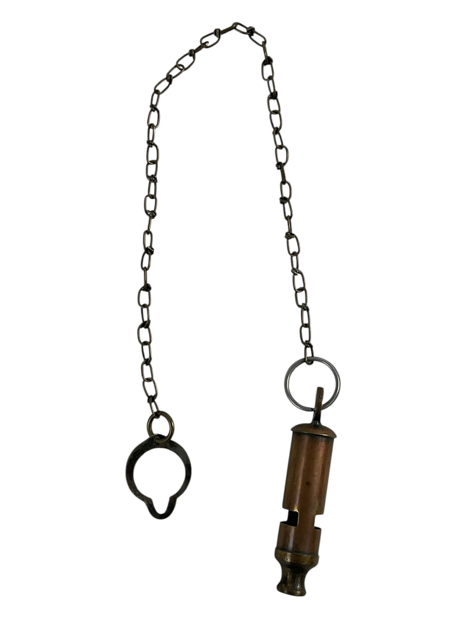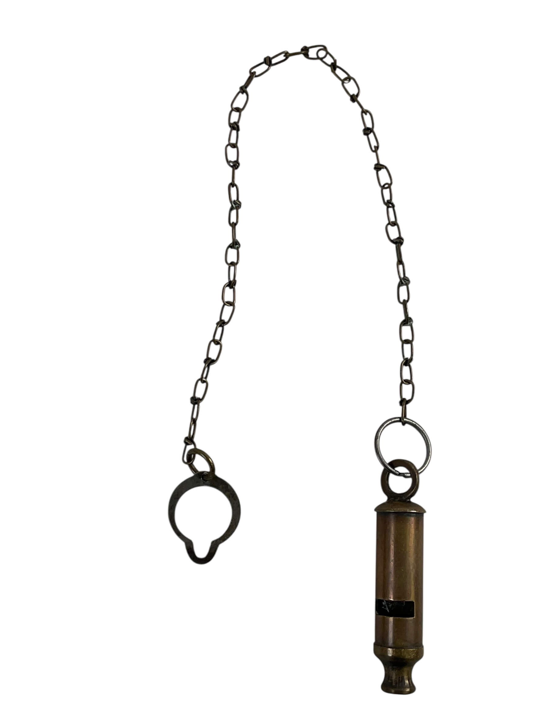 The British Police Bobby Whistle with Chain is a traditional signaling device historically used by police constables, known as “Bobbies,” throughout the United Kingdom. Introduced in the late 19th century as an alternative to the police rattle, the whistle became an essential part of police equipment, serving as a tool for drawing attention and signaling for assistance. Typically crafted from nickel-plated brass, this whistle features a distinctive cylindrical body with a secure chain attachment, allowing it to be affixed to a uniform. The instrument produces a sharp, piercing tone that is easily audible at distance, making it effective in urban environments. The chain design ensures the whistle remains accessible but secure during active duty. This item represents a notable aspect of British policing history and reflects the practical tools employed in law enforcement prior to the widespread use of radios and electronic communication devices.