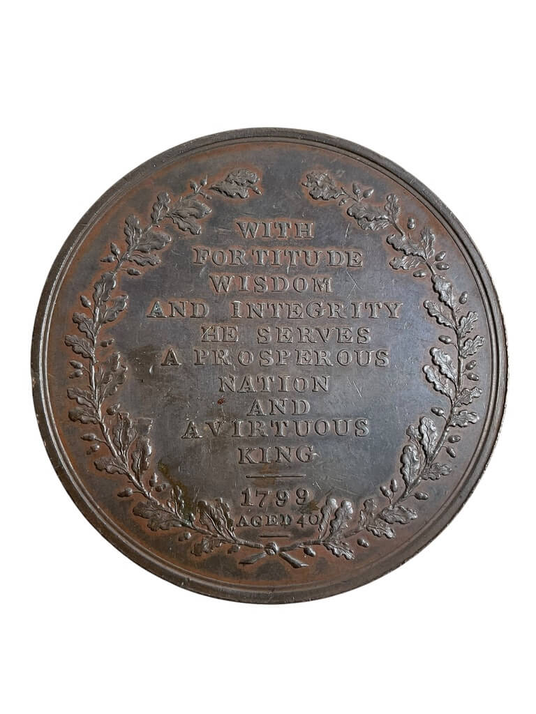 British Prime Minister William Pitt the Younger 1799 Bronze Medallion