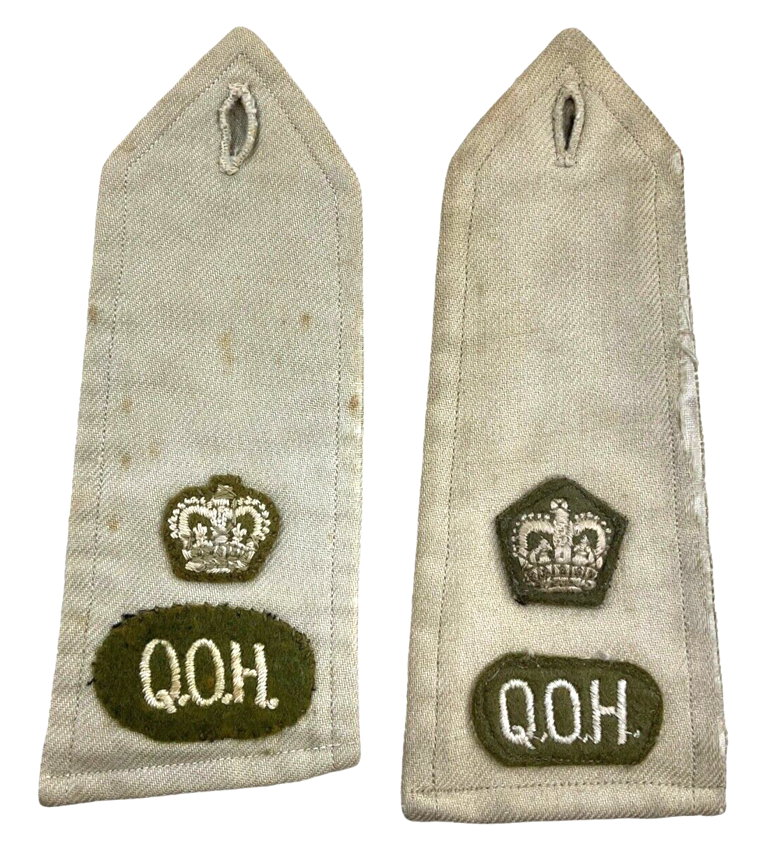 British Queen’s Own Hussars Officers Major Slip On Shoulder Title Insignia Pair