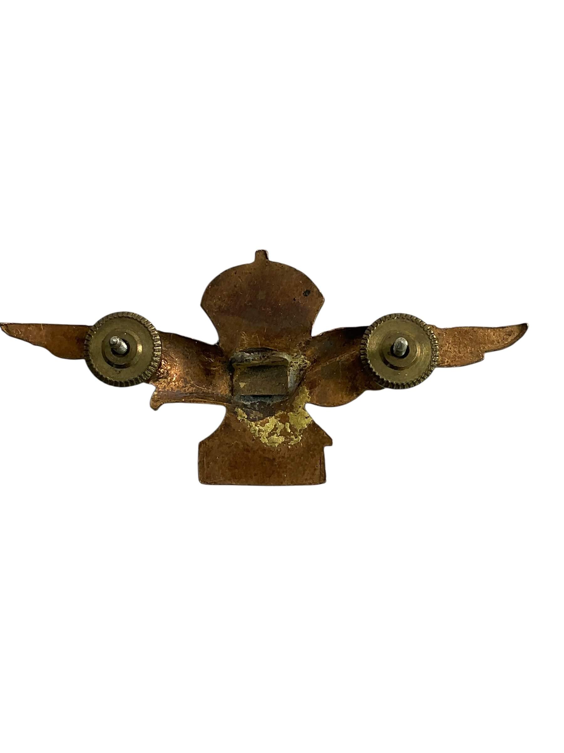 The British RAF Cap Badge is an insignia worn by members of the Royal Air Force as part of their official headgear. Introduced shortly after the RAF’s establishment in 1918, this badge is traditionally crafted from brass or bi-metal and features a prominent eagle in flight, overlaid by a laurel wreath. A king’s or queen’s crown is positioned at the top of the badge,