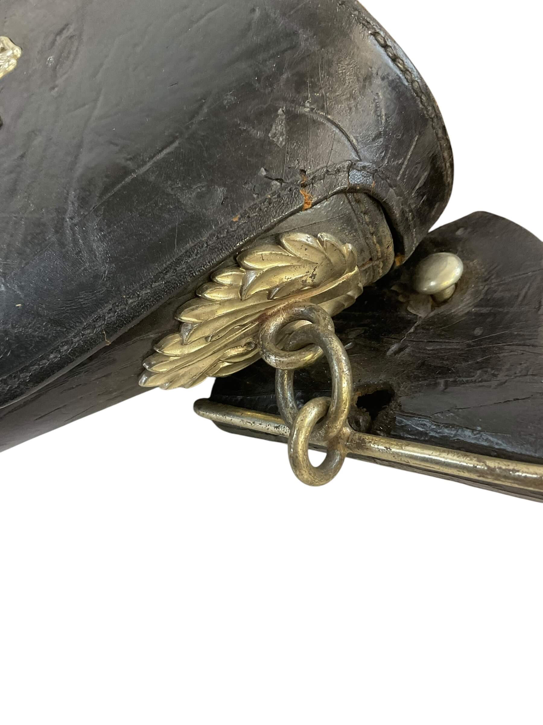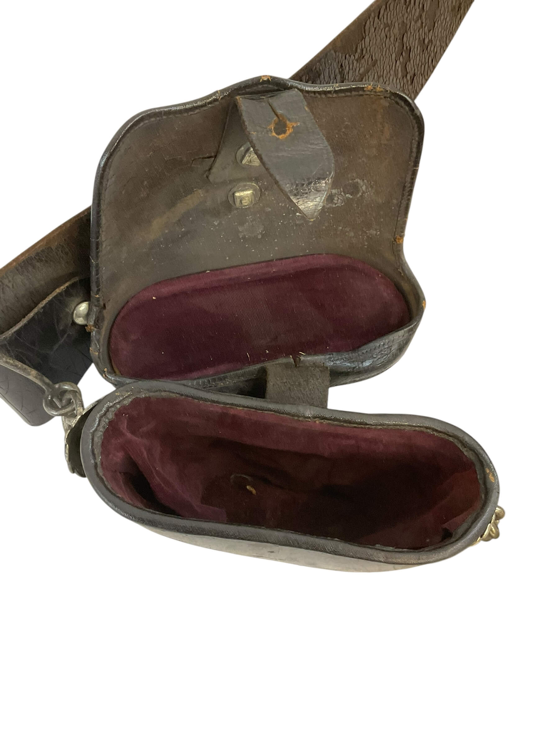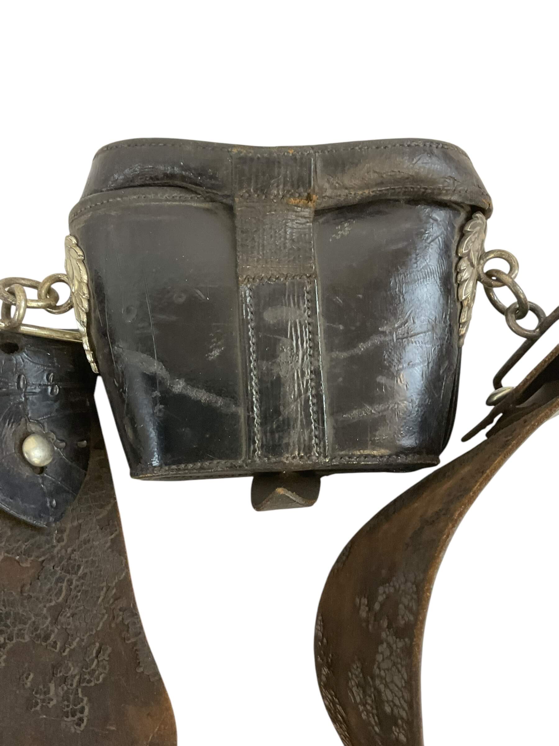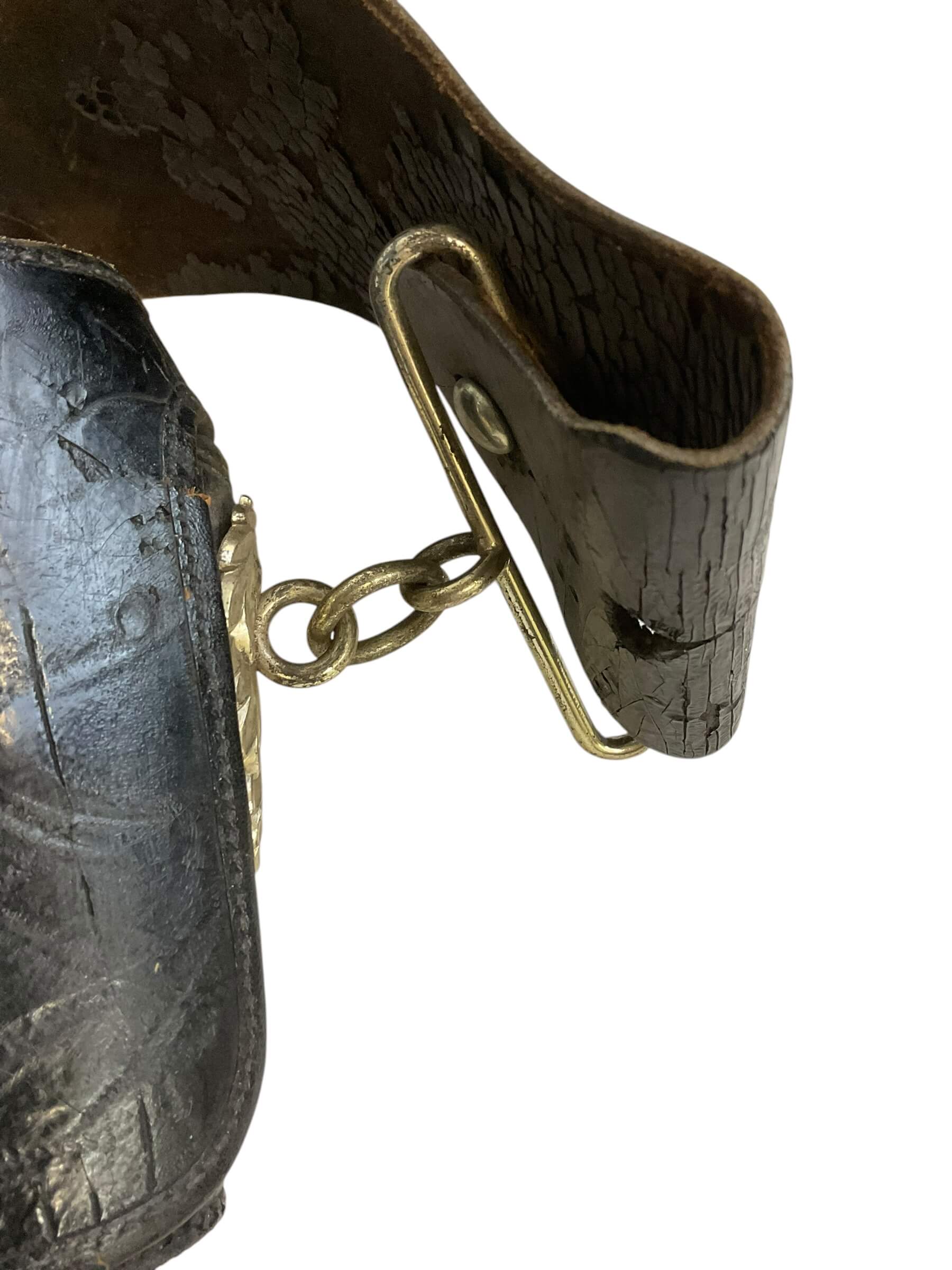 The ‘British Rifle Regiment Officers Cross Belt’ is a highly symbolic and ornamental piece of military attire, worn by officers of the British Rifle Regiment. Crafted from high-quality leather, the belt is traditionally worn diagonally across the chest, showcasing the regiment’s insignia and badges of rank. It features a distinctive silver whistle, known as a ‘boss’, attached to a chain, which is a defining characteristic of this particular regiment. The belt is not only functional, providing a place to hang a sword or pistol, but it also serves as a significant mark of prestige and honour within the British military. Its intricate design and fine craftsmanship are testament to the long-standing traditions and high standards of the British Rifle Regiment.