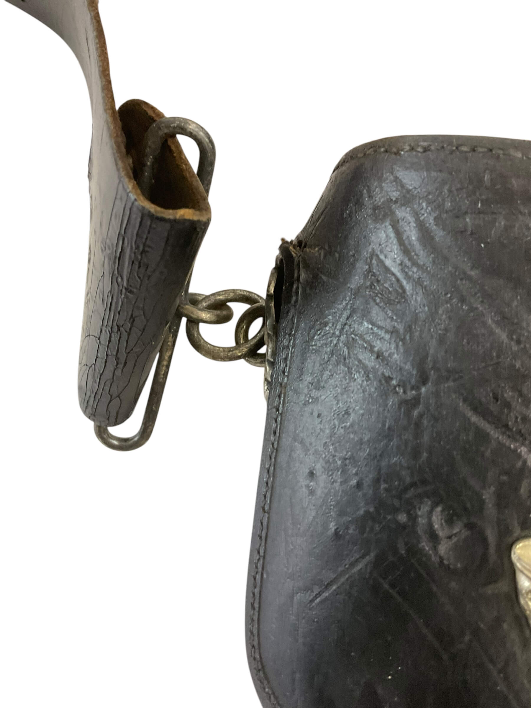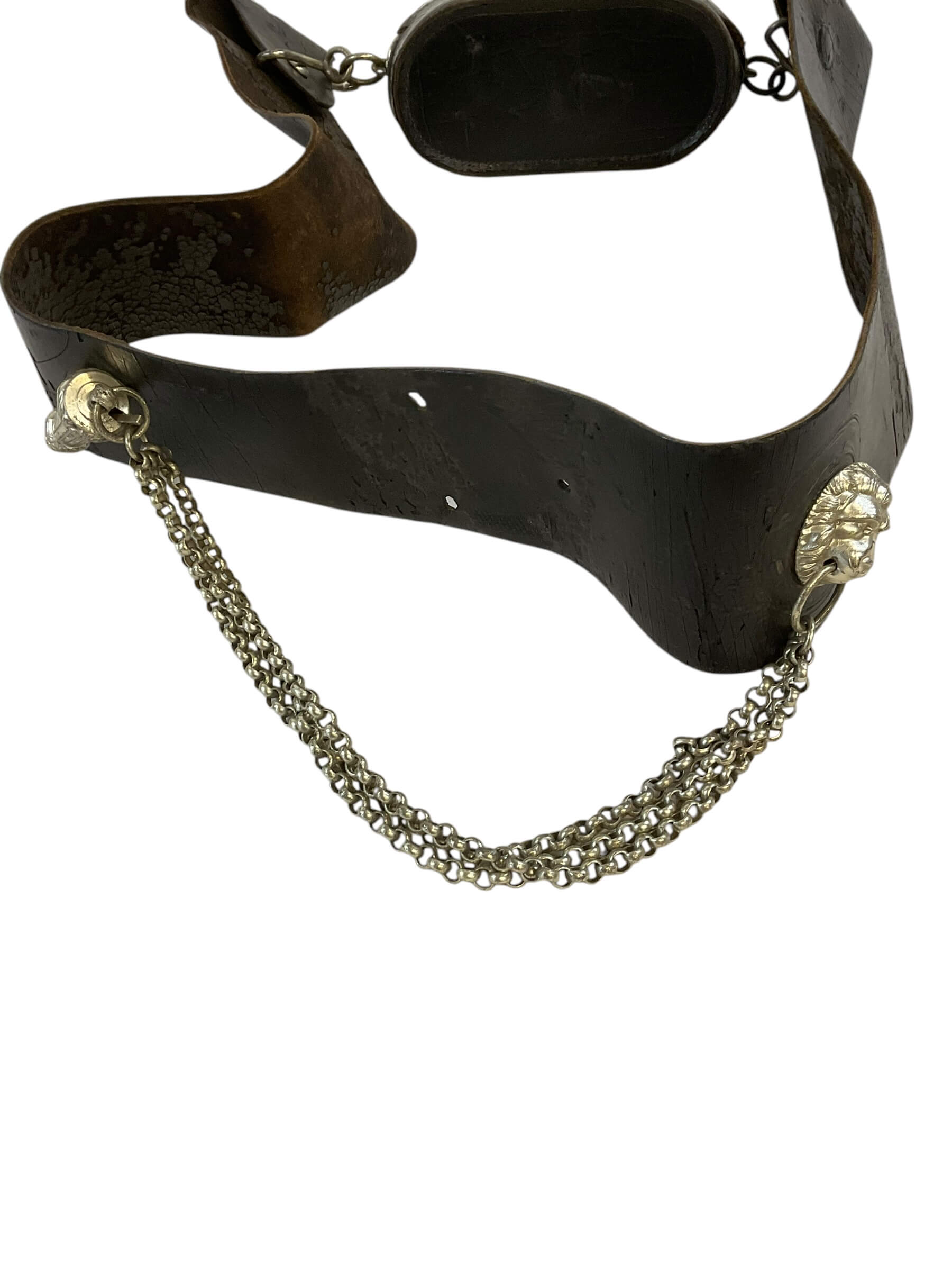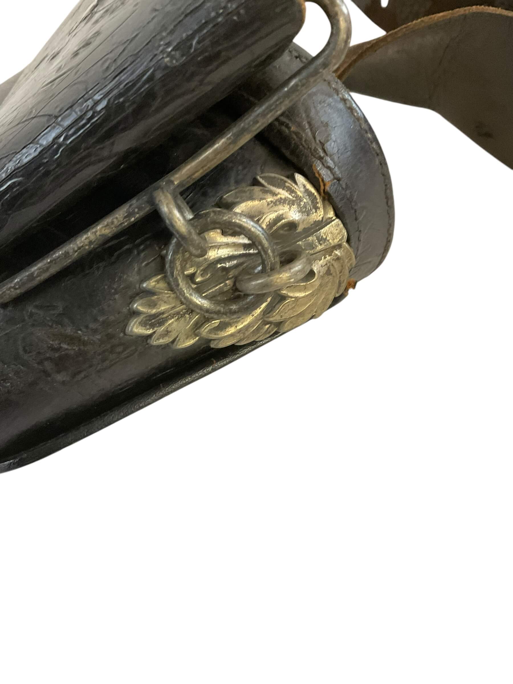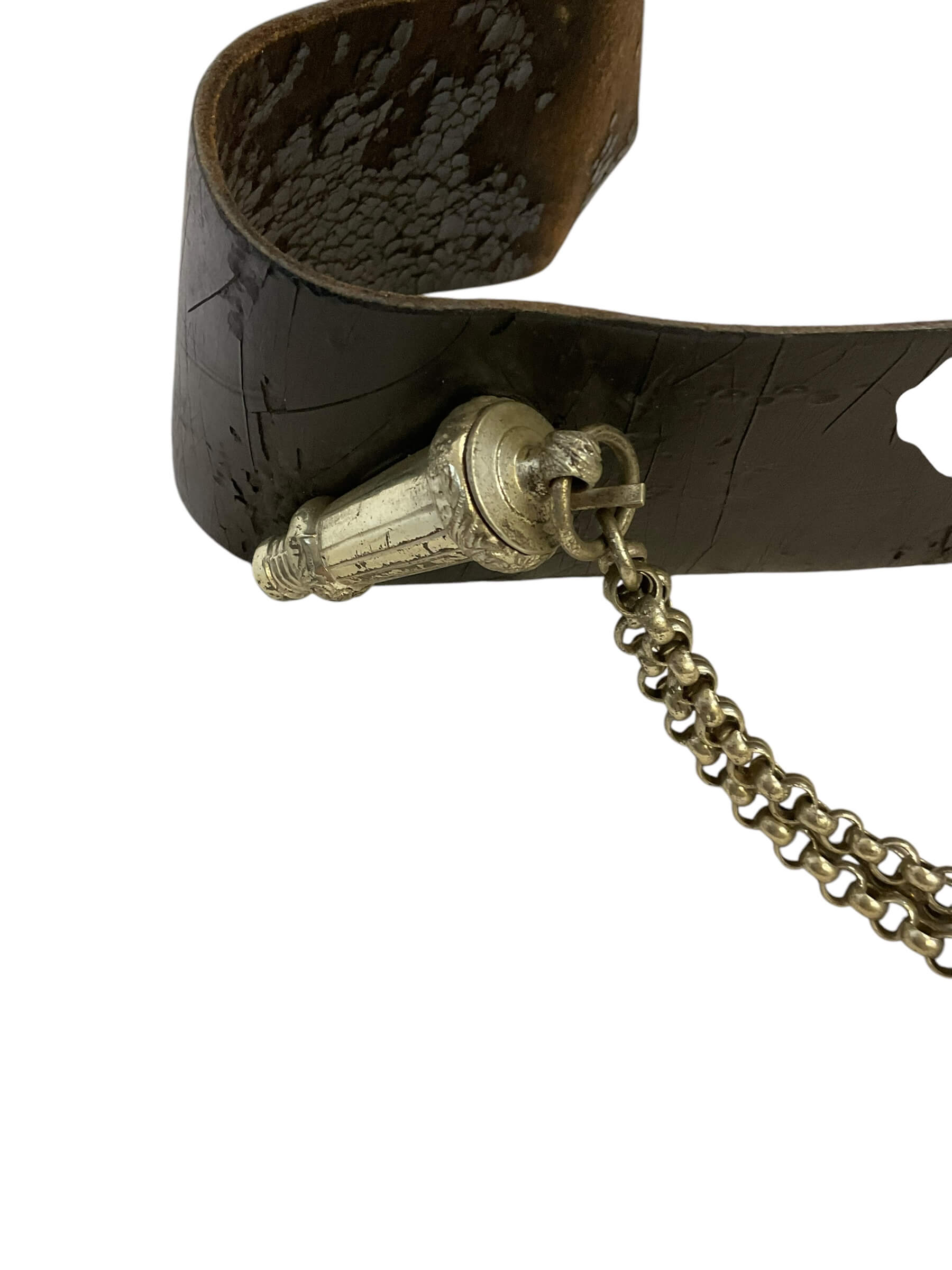 The ‘British Rifle Regiment Officers Cross Belt’ is a highly symbolic and ornamental piece of military attire, worn by officers of the British Rifle Regiment. Crafted from high-quality leather, the belt is traditionally worn diagonally across the chest, showcasing the regiment’s insignia and badges of rank. It features a distinctive silver whistle, known as a ‘boss’, attached to a chain, which is a defining characteristic of this particular regiment. The belt is not only functional, providing a place to hang a sword or pistol, but it also serves as a significant mark of prestige and honour within the British military. Its intricate design and fine craftsmanship are testament to the long-standing traditions and high standards of the British Rifle Regiment.