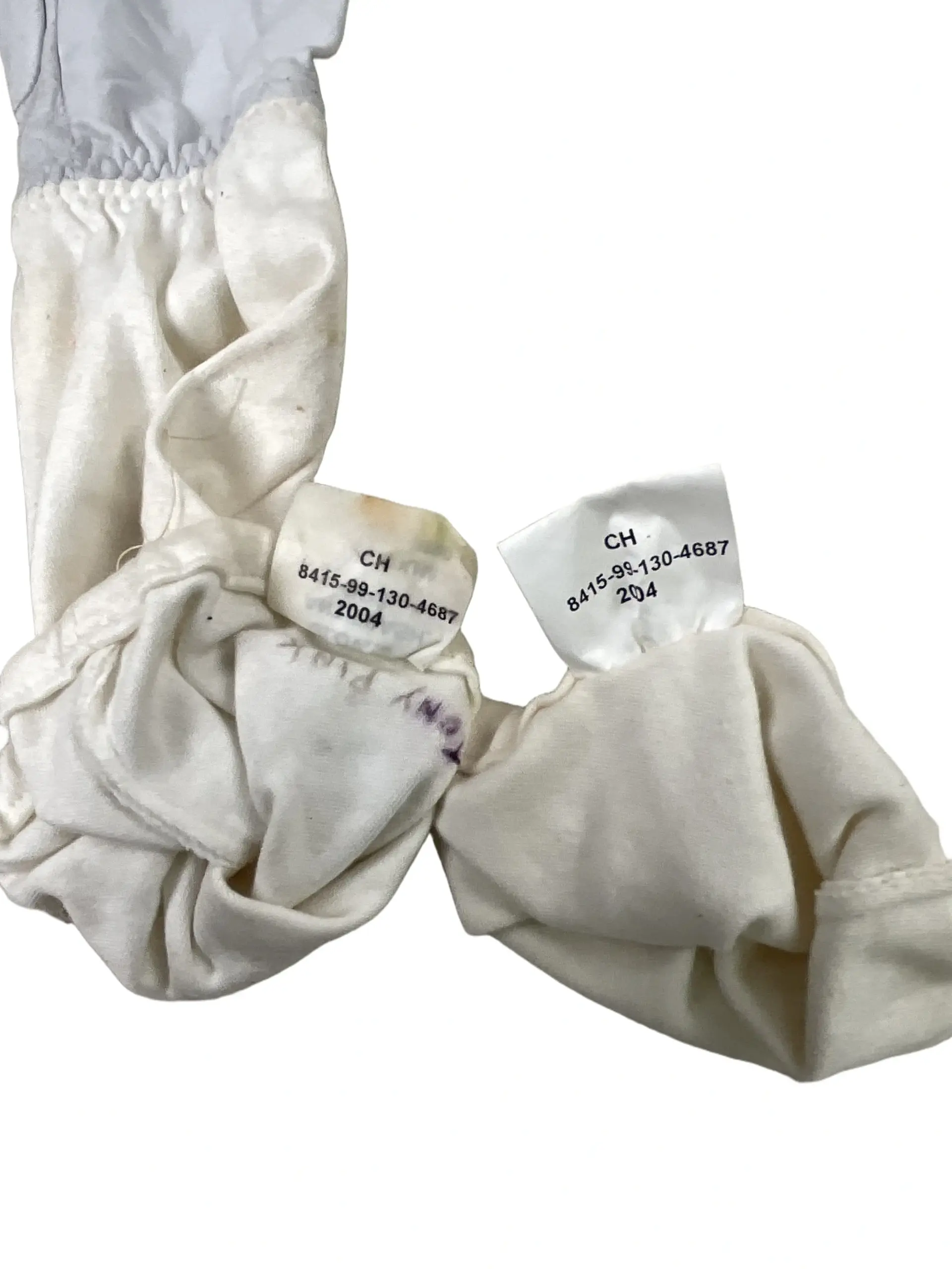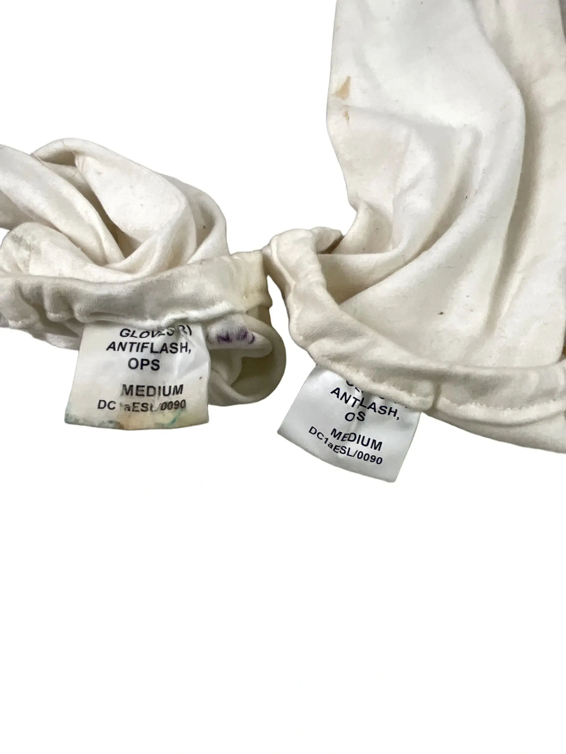 British RN Navy Anti-Flash Gloves, Size Medium, are protective gloves issued to Royal Navy personnel for use in environments where exposure to extreme heat, flames, or flash fires is a risk. Constructed from fire-resistant materials, these gloves are designed to provide a barrier against burns and heat injuries during emergency situations, such as shipboard fires. The anti-flash gloves typically feature a gauntlet-style cuff for additional forearm protection and are worn along with matching anti-flash hoods. Their construction allows for a secure fit, ensuring dexterity and ease of movement while maintaining effective protection. Commonly used by sailors throughout the latter half of the twentieth century, these gloves are a standard component of naval firefighting and damage control equipment. Size Medium generally fits average adult hands, in line with Royal Navy sizing standards. This item is suitable for collectors of military uniforms and those interested in naval history or historical firefighting gear.