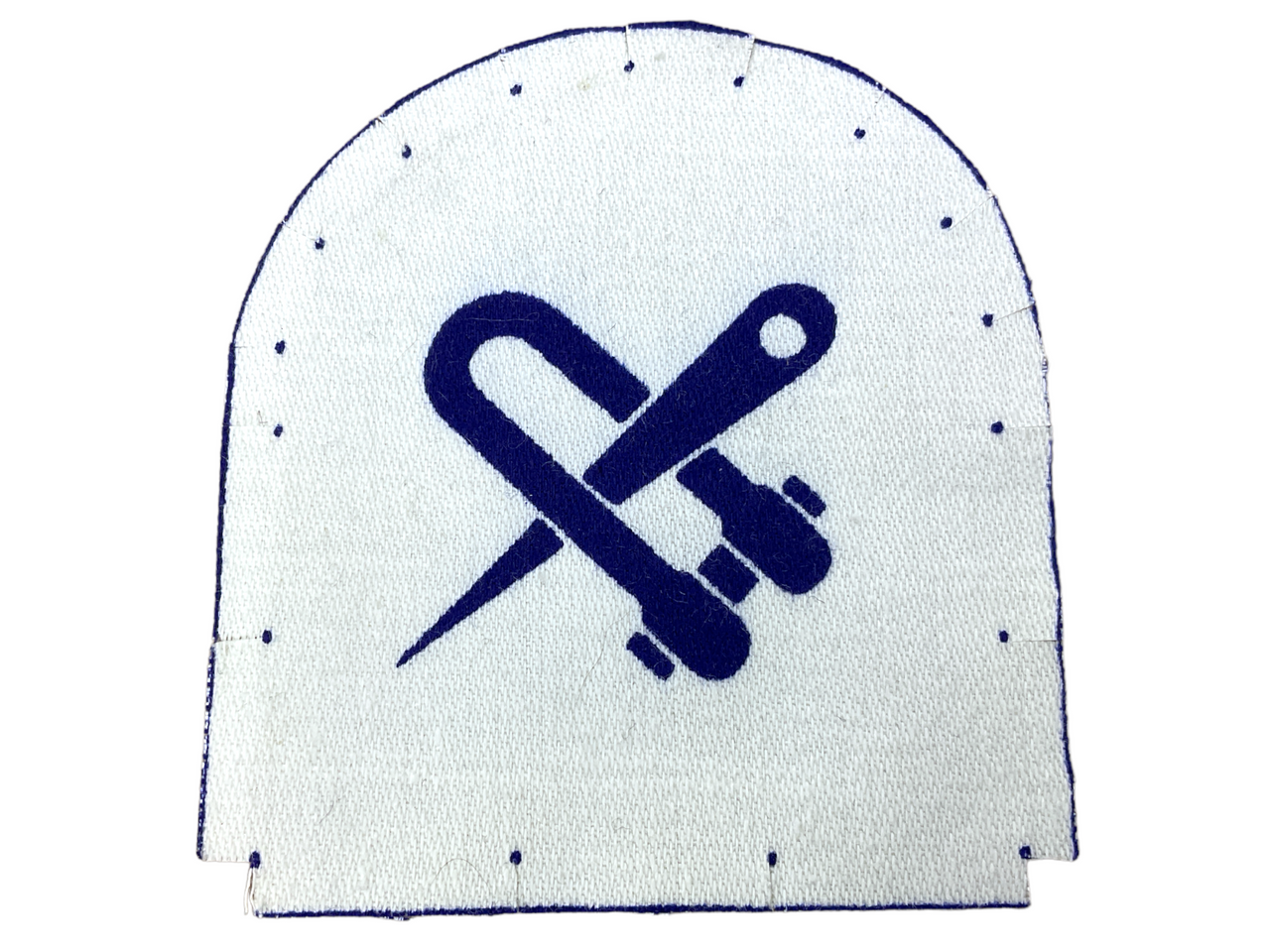 The British Royal Navy Boom Defense Sleeve Patch Insignia is a distinguished emblem worn by naval personnel assigned to boom defense duties. This insignia, traditionally sewn onto the uniform sleeve, symbolizes the critical role these service members play in protecting harbors and naval installations from enemy vessels and underwater threats. The design typically features naval imagery, such as anchors or chains, reflecting the robust and unwavering defense mechanisms used to safeguard maritime assets. Wearing this patch signifies a sailor’s expertise in the deployment, maintenance, and operation of boom defenses, which are crucial barriers designed to obstruct the passage of torpedoes, submarines, and other potential dangers. Often steeped in history and naval tradition, the boom defense patch is a mark of honor and specialization within the Royal Navy, representing a commitment to the safety and security of national and allied waters.