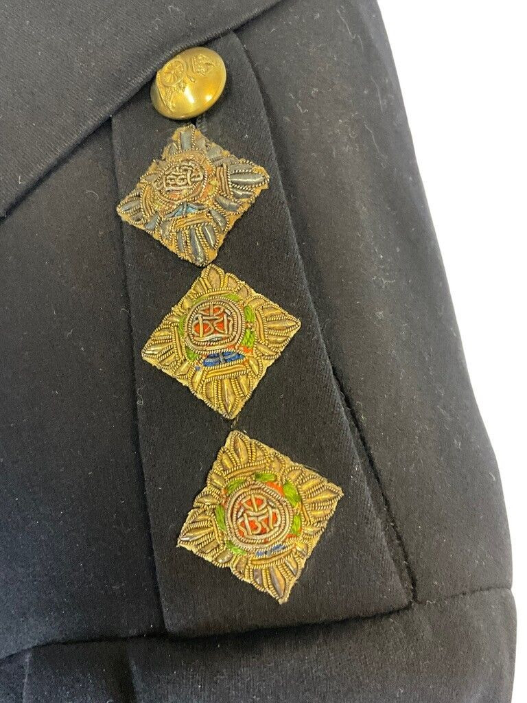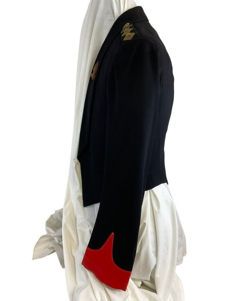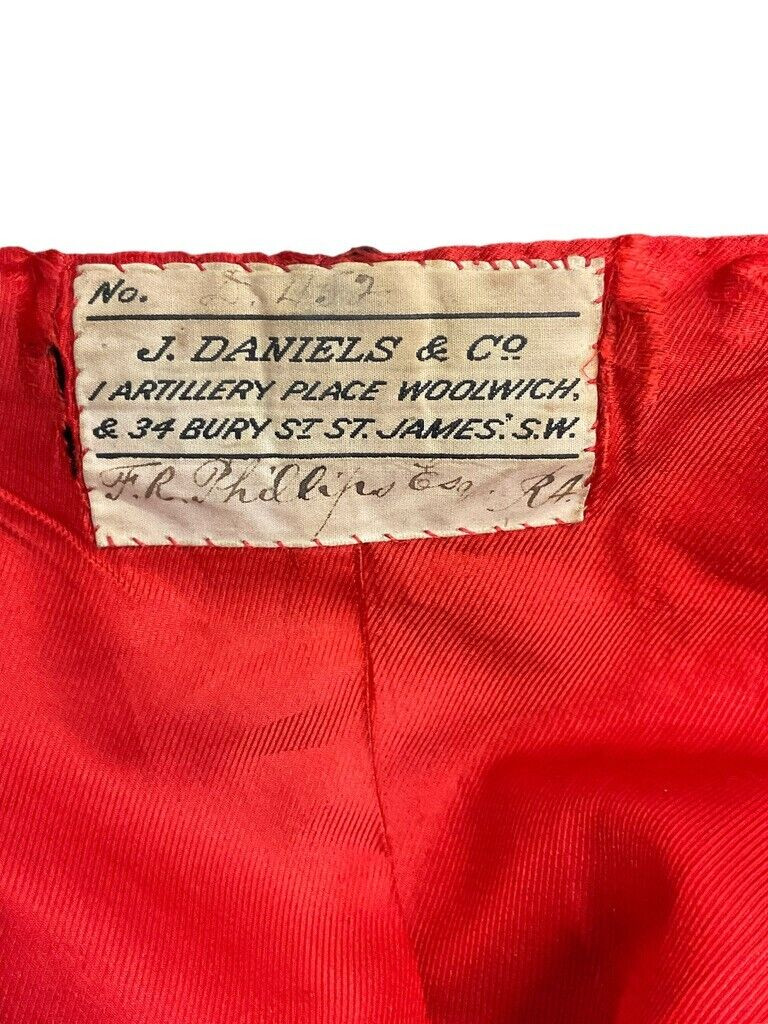The “British Royal Artillery Captain Named Officers Mess Dress Jacket” is a distinguished piece of military attire that exemplifies the elegance and tradition of the British Armed Forces. This exquisite jacket, tailored specifically for a Royal Artillery Captain, is a testament to meticulous craftsmanship and outstanding design. Typically worn during formal military events and mess dinners, the jacket features the iconic intricate braid and detailing unique to the Royal Artillery. The owner’s name is inscribed inside, adding a personal touch and historical significance. Made from high-quality materials, the jacket ensures both comfort and durability. Ideal for collectors and military enthusiasts, it not only represents the pride and honor of serving in the British Royal Artillery but also serves as a symbol of the rich heritage and unwavering dedication of its officers. Owning this named mess dress jacket offers a unique glimpse into the storied traditions of British military history.