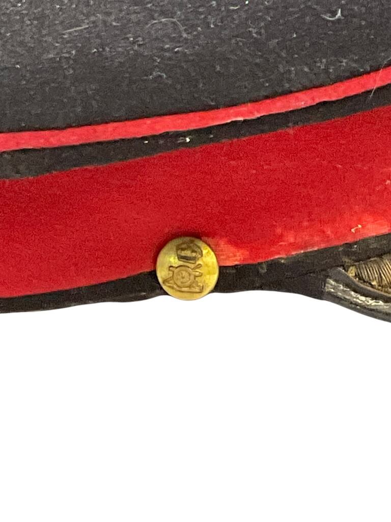 This British Royal Artillery Officers Peak Cap Hat is a stunning replica of military regalia, true to the size 7 specification. The cap is meticulously crafted with attention to detail, reflecting the prestige and dignity of the British Royal Artillery Officers. Its main feature is the iconic red and navy blue design, adorned with gold trim and the Royal Artillery’s insignia. The peak of the cap is glossy black, providing a striking contrast. The interior of the cap is lined with comfortable fabric for a snug fit. Whether for a military enthusiast, a collector of military memorabilia, or for use in theatre productions, this cap serves as a testament to the elegance and grandeur of the British Royal Artillery. A true collector’s item, it offers a slice of history and a touch of royal charm.