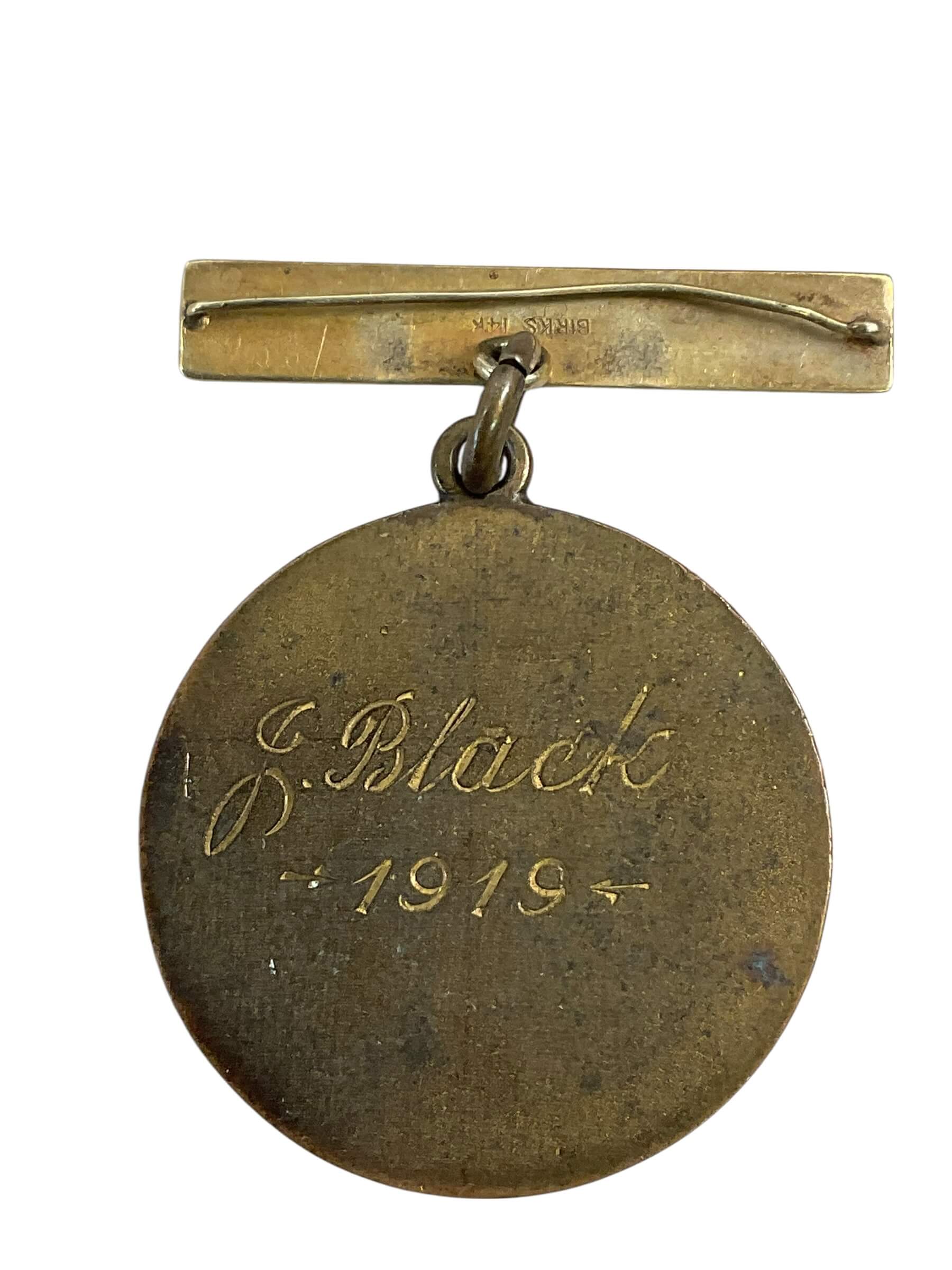 British Royal Lifesaving Society Named J. Black 1919 Medal With 14K Birks Bar