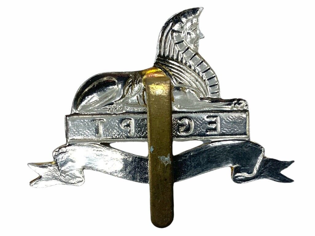 The British Royal Lincolnshire Regiment Cap Badge is a historical military insignia representing the esteemed Royal Lincolnshire Regiment, a renowned infantry unit within the British Army. This intricate badge is meticulously crafted, often featuring a sphinx atop a tablet inscribed with “Egypt” to commemorate the regiment’s distinguished service in the Egyptian campaigns. Surrounding this central motif is a laurel wreath, symbolizing victory and honor. The badge serves not only as a marker of identity for those who wore it but also as a tribute to the regiment’s storied legacy and valor. Collectors and historians highly prize these badges for their rich historical significance and detailed craftsmanship. Whether adorning a uniform or displayed as part of a collection, the British Royal Lincolnshire Regiment Cap Badge remains a powerful emblem of military heritage and pride.