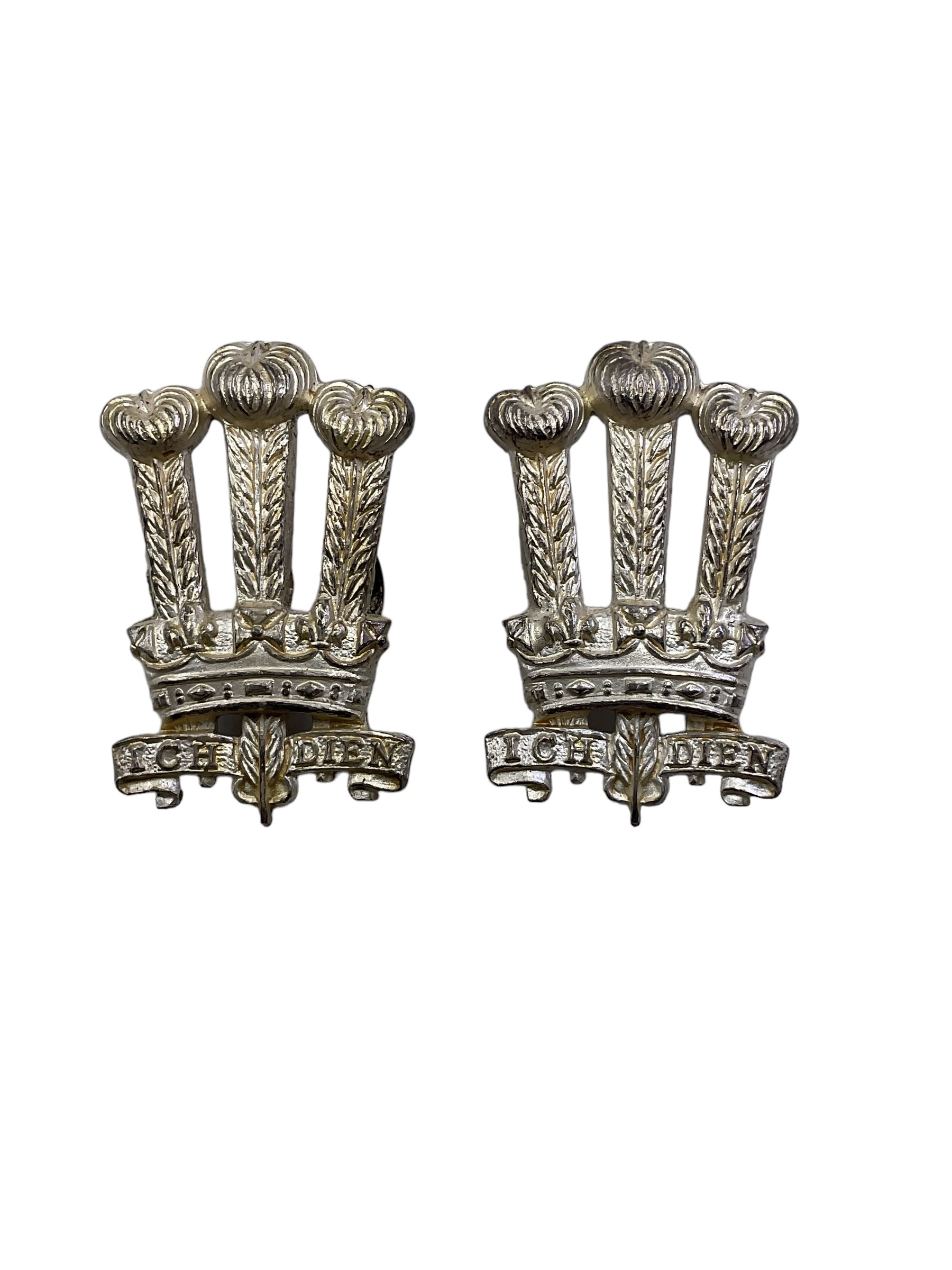British Royal Regiment Of Wales Silver Officers Collars Insignia Pair