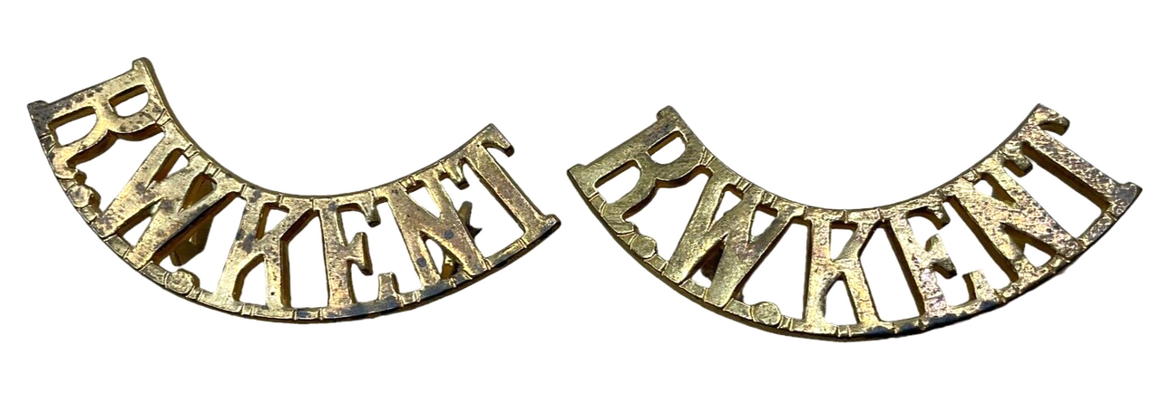 The British Royal West Kent Regiment Shoulder Title Pair is a distinguished set of military insignia emblematic of the esteemed Royal West Kent Regiment. Crafted with precision and attention to detail, these shoulder titles are a testament to the proud heritage and distinguished service of the regiment. Each piece in the pair features the regiment’s name elegantly inscribed, typically in a curved, brass format, designed to be worn on the uniform’s shoulder straps. Serving as a symbol of identity and honor, these shoulder titles connect the bearer to the regiment’s storied history, which dates back to the late 19th and early 20th centuries. Collectors and military enthusiasts alike treasure these shoulder titles not only for their historical significance but also for their role in commemorating the bravery and dedication of those who served in the Royal West Kent Regiment. This pair is a timeless emblem of military pride and tradition.