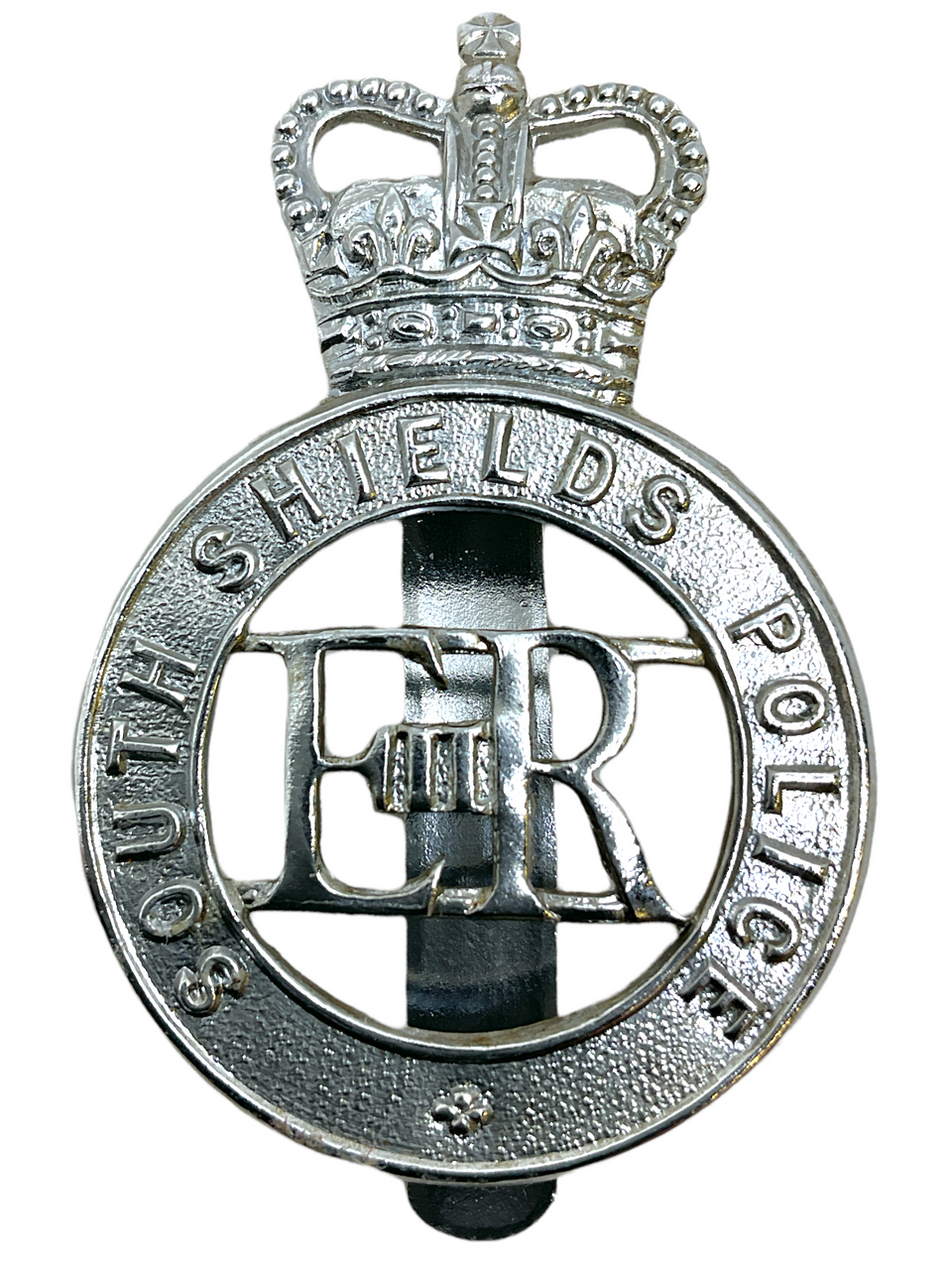 The British South Shields Police Constabulary Helmet Badge represents a significant piece of law enforcement history in the UK. This meticulously crafted badge is emblematic of the dedication and tradition upheld by the South Shields Police force. Made from high-quality metals, it features intricate detailing and the classic iconography associated with British policing. The badge typically includes the reigning monarch’s crown at the top, symbolizing authority, and the name ‘South Shields’ prominently displayed, denoting the specific jurisdiction. Often, the design incorporates elements reflective of the region’s heritage and the police force’s steadfast commitment to public safety. Collectors and history enthusiasts alike value this badge not only for its aesthetic appeal but also for its embodiment of the principles of honor, service, and community that define the South Shields Police Constabulary’s legacy. This badge serves as both a historical artifact and a tribute to the men and women who have served the community with distinction.