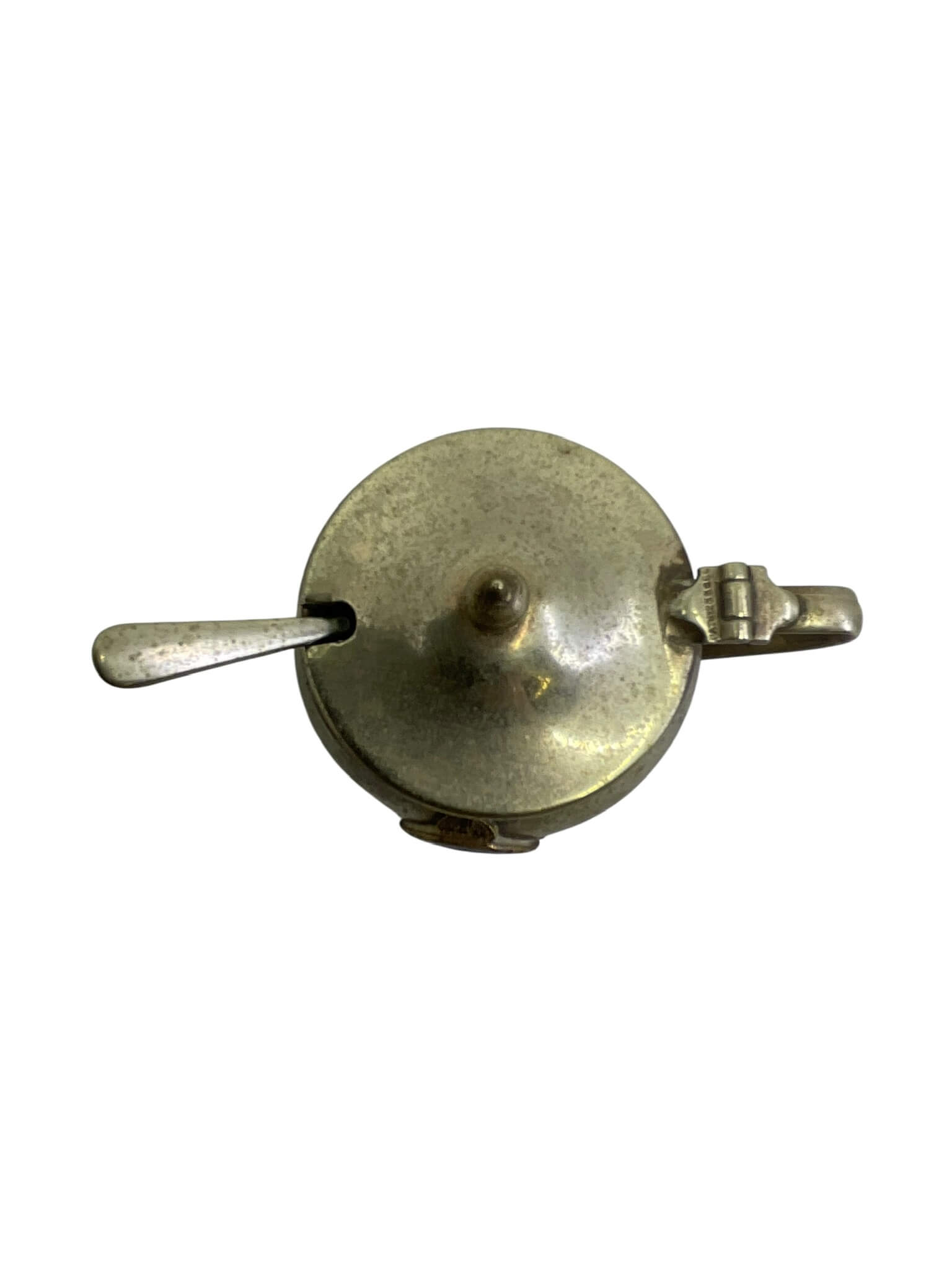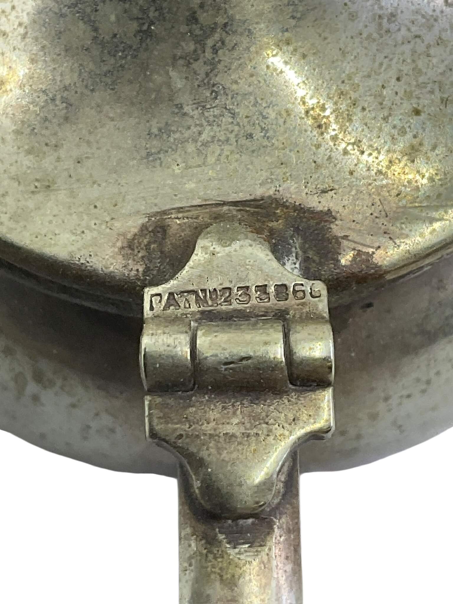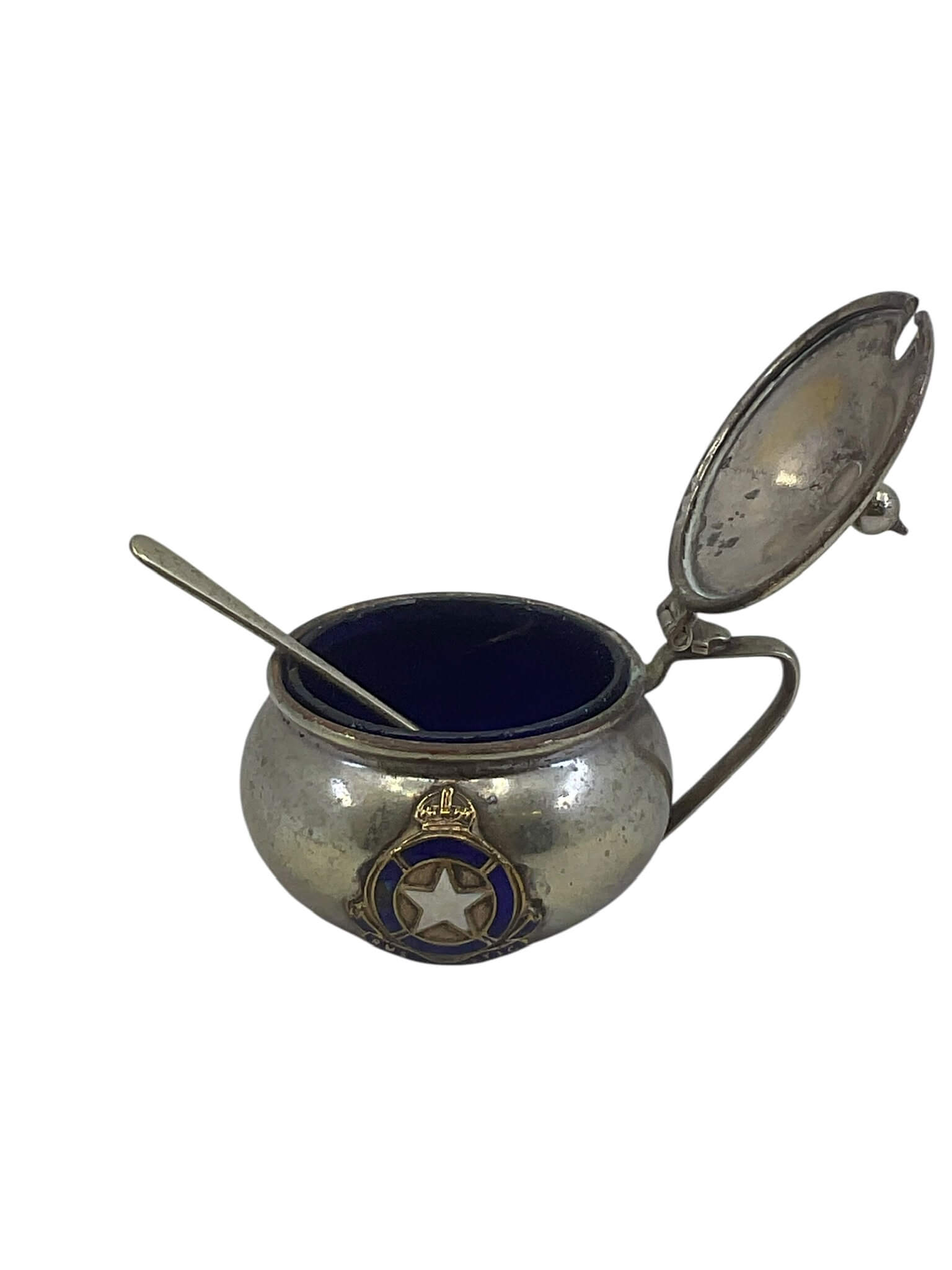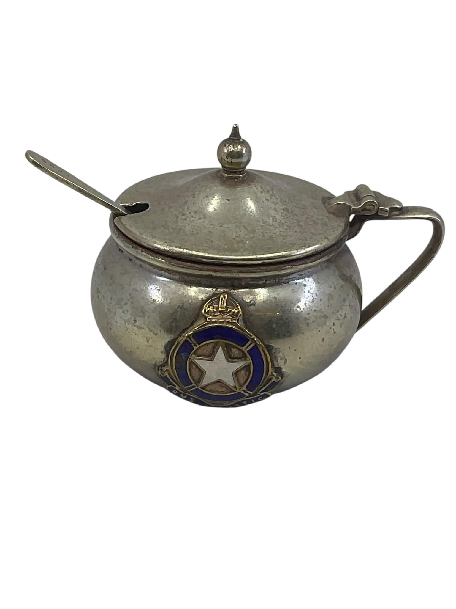 The British Steamship RMS Albertic Salt Dish with Serving Spoon is a tableware item originating from the early 20th century. The salt dish is crafted from metal, typically silver-plated, and bears marks or insignia associated with the RMS Albertic, a steamship operated by the White Star Line. The RMS Albertic served as a passenger and cargo vessel during its operational period from 1927 to 1934, making this item a piece of maritime history. The included serving spoon is designed to accompany the salt dish, both serving functional purposes during formal meals onboard the ship. Such items were standard fittings in first-class dining areas and are notable for their sturdy construction and attention to detail, often featuring engraved ship crests or company logos. This salt dish and spoon set is of interest to collectors of military and maritime antiques, providing a tangible connection to early 20th-century naval hospitality and service.