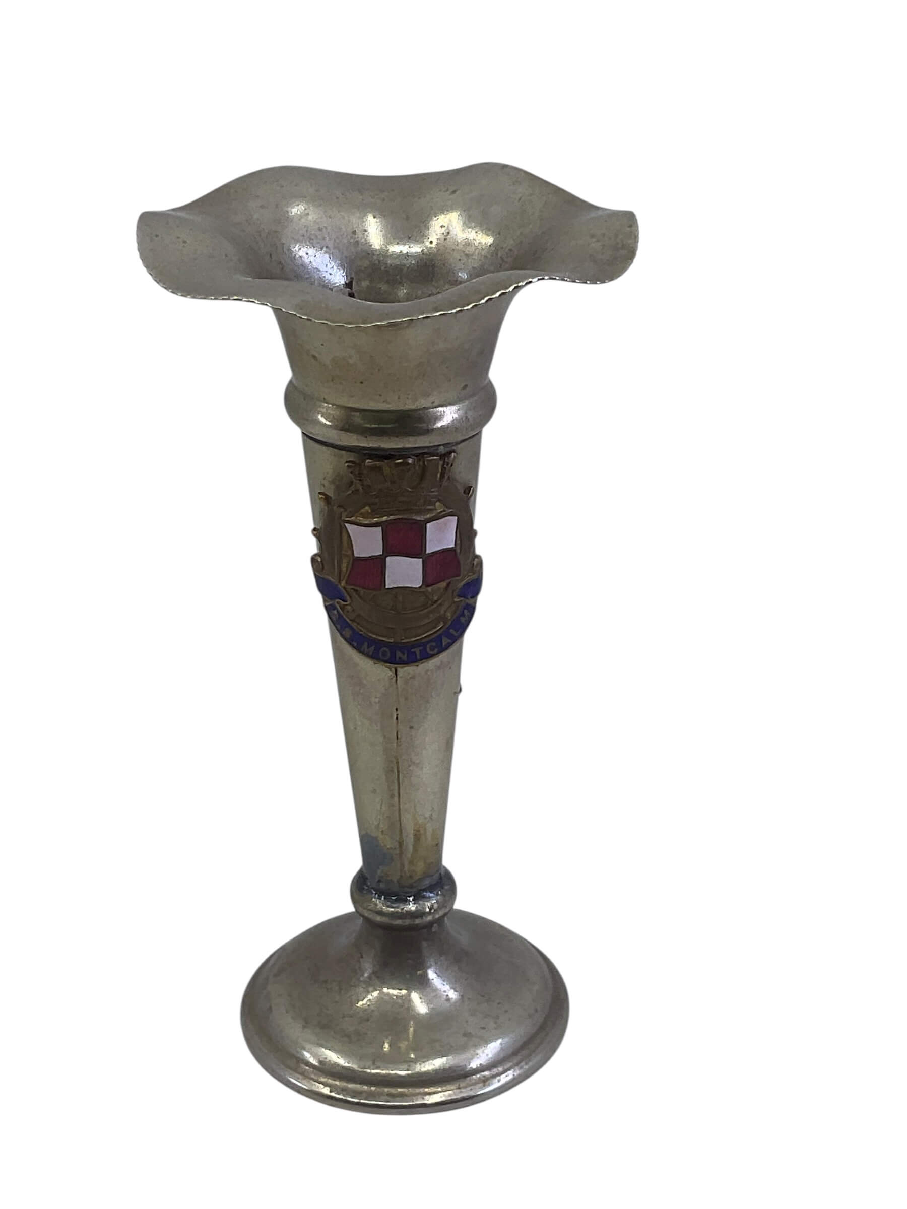 The British Steamship S.S. Montcalm Small Vase is a historical maritime collectible associated with the S.S. Montcalm, an ocean-going steamship launched in the early 20th century. This vessel was operated under the British flag and was active during a period when steamships played a significant role in both commercial and military naval operations. The vase is crafted from ceramic and features design elements typical of period shipboard ceramics, including transfer-printed or painted insignia that often references the vessel’s name or its company. Such items were commonly produced as onboard souvenirs or for use in the ship’s dining saloons, serving both practical and commemorative purposes. The S.S. Montcalm Small Vase provides insight into naval hospitality customs and the broader context of British maritime history, particularly in relation to civilian and auxiliary vessels. Measuring a modest size suitable for display or functional use, this vase is a representative example of early 20th-century maritime serviceware.