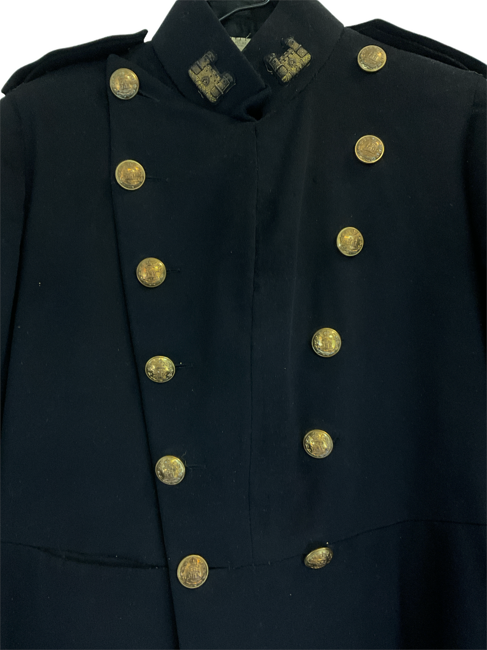 This distinguished British Suffolk Regiment Officers Frock Coat is adorned with exquisite bullion insignia, carefully handcrafted to reflect the prestige and honor of its storied history. Made for an officer, the medium-sized coat is a striking representation of regimental pride, complete with intricately designed gold and silver threads that showcase the rank and valor of its wearer. The frock coat embodies the sophistication and valor characteristic of the Suffolk Regiment, known for its significant contributions and noble service throughout its deployment. Each detail on the coat from the precise stitching to the fine embroidery speaks volumes of the meticulous craftsmanship and heritage. This coat is not just an article of clothing but a piece of history, making it an invaluable addition for collectors of military memorabilia or those with a deep appreciation for British military regalia. Embrace a legacy of bravery and tradition with this iconic piece.