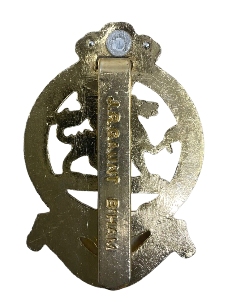 The British The Queen’s Regiment Staybrite Cap Badge is an iconic piece of military insignia that proudly represents the esteemed history and tradition of the Queen’s Regiment. Crafted from Staybrite, a type of anodized aluminum known for its durability and shine, this cap badge features intricate detailing, including the regiment’s emblem and symbols. Designed to be both lightweight and resilient, the Staybrite material ensures the badge retains its polished appearance in various conditions, making it a practical yet ceremonial accessory for members of the regiment. Perfect for collectors of military memorabilia, historians, or enthusiasts of British military history, this cap badge not only symbolizes loyalty and service but also serves as a tangible piece of the storied lineage of the Queen’s Regiment. Its lustrous finish and historical significance make it a highly prized item for those who appreciate military heritage.