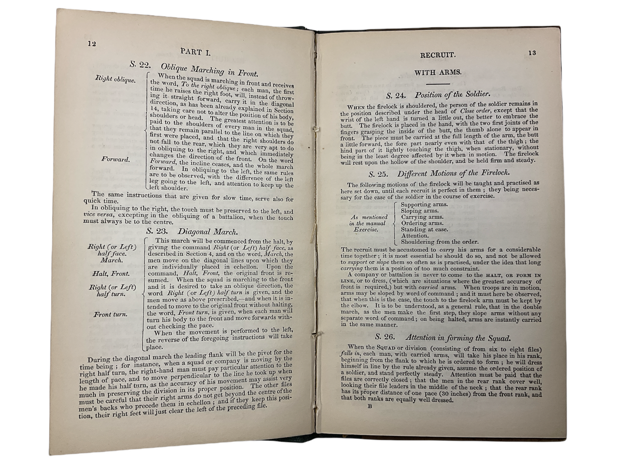 hard cover British Victorian Army Infantry Company Drill Manual 1834. Total of 47 pages with lots of information