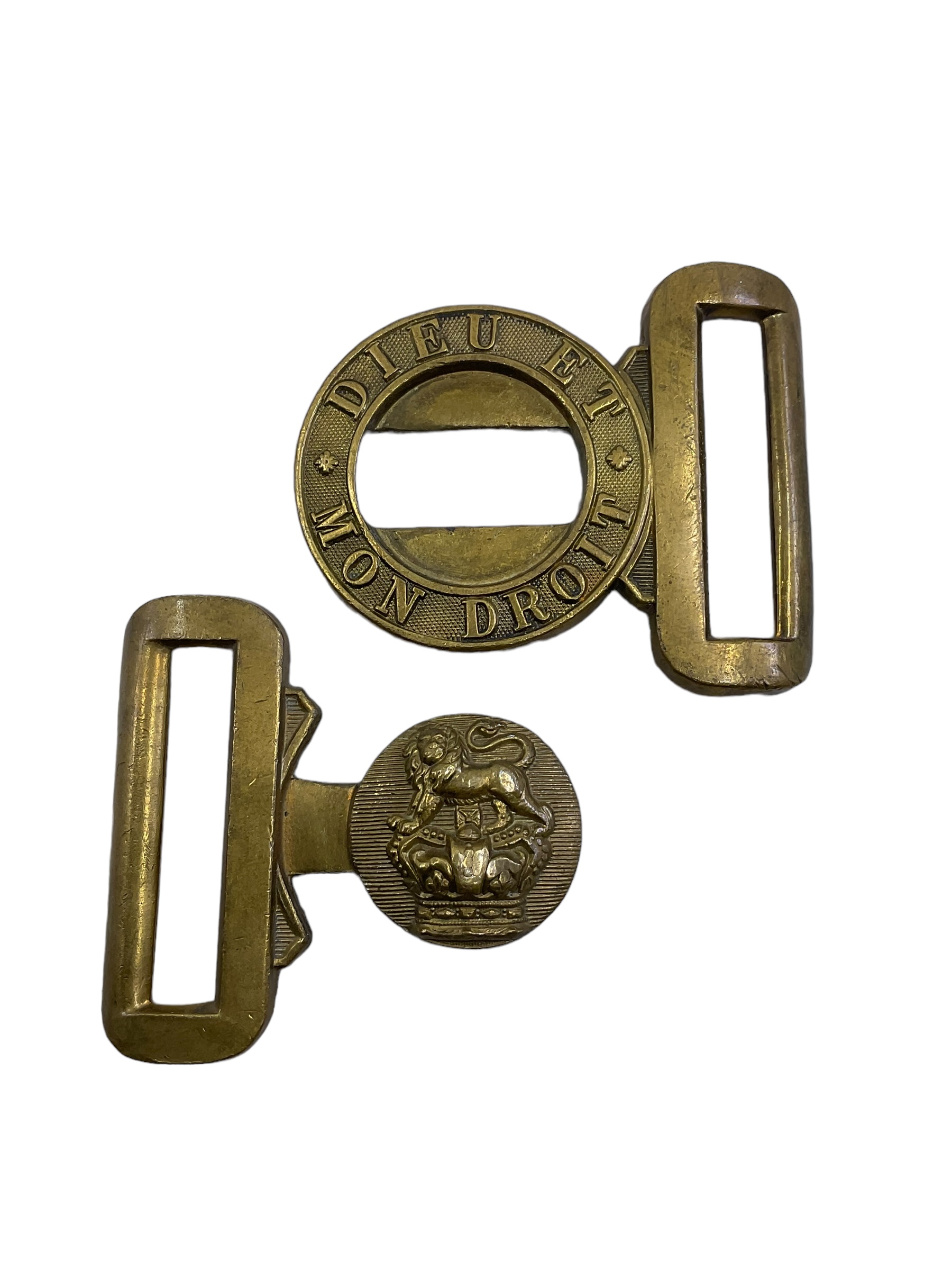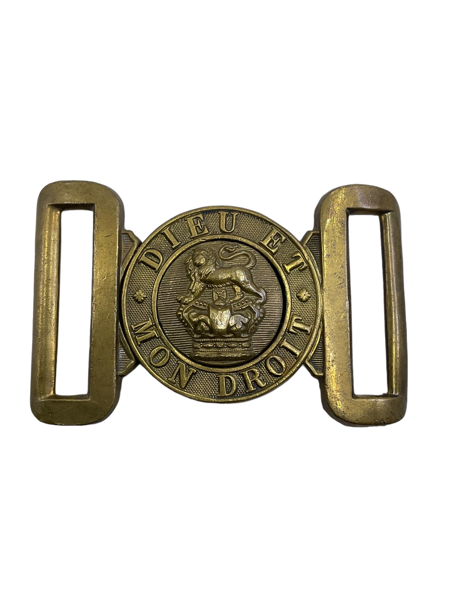 This intricately designed British Victorian Brass Belt Buckle for Other Ranks is a stunning representation of military regalia from the Victorian era. Crafted meticulously from high-quality brass, this buckle showcases the elegance and attention to detail characteristic of the period. The buckle features ornate engravings that likely symbolize the pride and tradition of the British military. Sized for practical use by lower-ranking officers, the buckle is both a functional and decorative piece, reflecting the 19th-century standards of craftsmanship. This historical artifact is perfect for collectors of military memorabilia, historians, and enthusiasts of Victorian-era artifacts. Whether showcased in a personal collection or used as an educational exhibit, this brass belt buckle offers a tangible connection to the past, narrating stories of dedication, duty, and the distinguished service of British soldiers. An exceptional piece, it captures the essence of a bygone era with grace and authenticity.