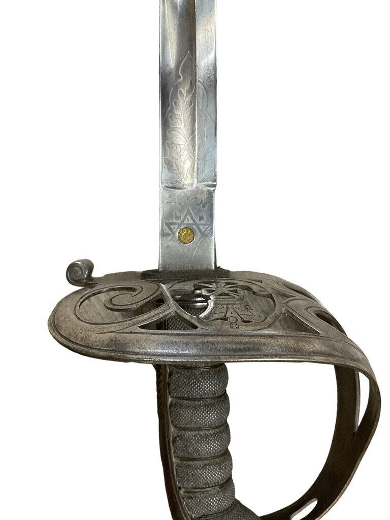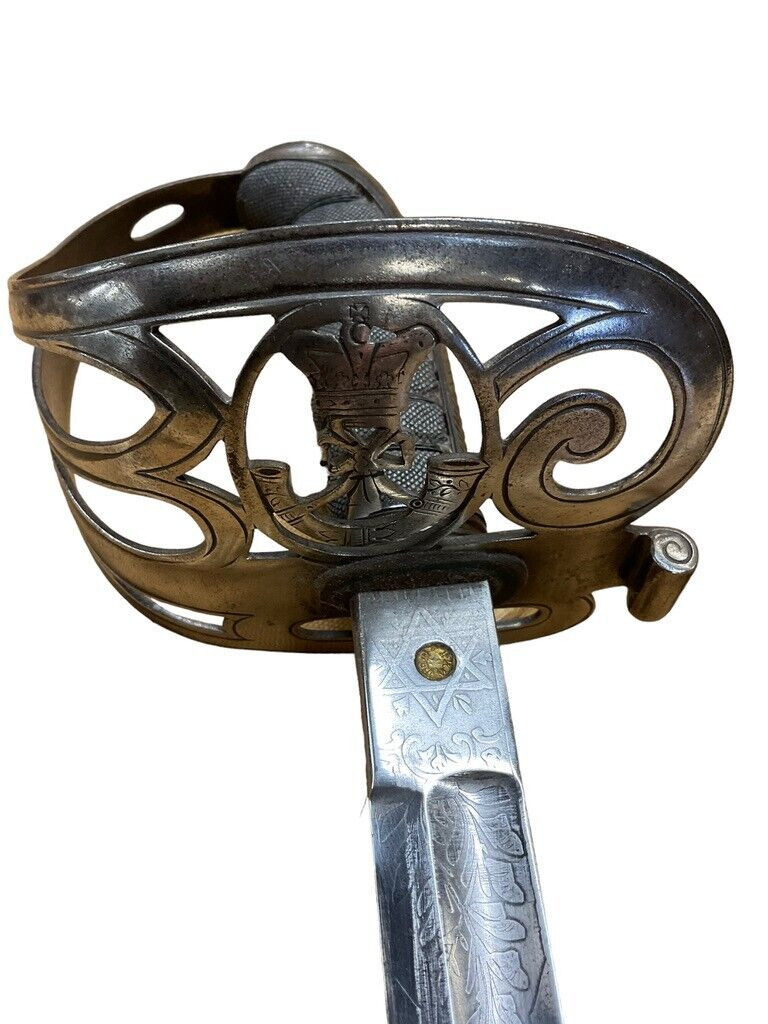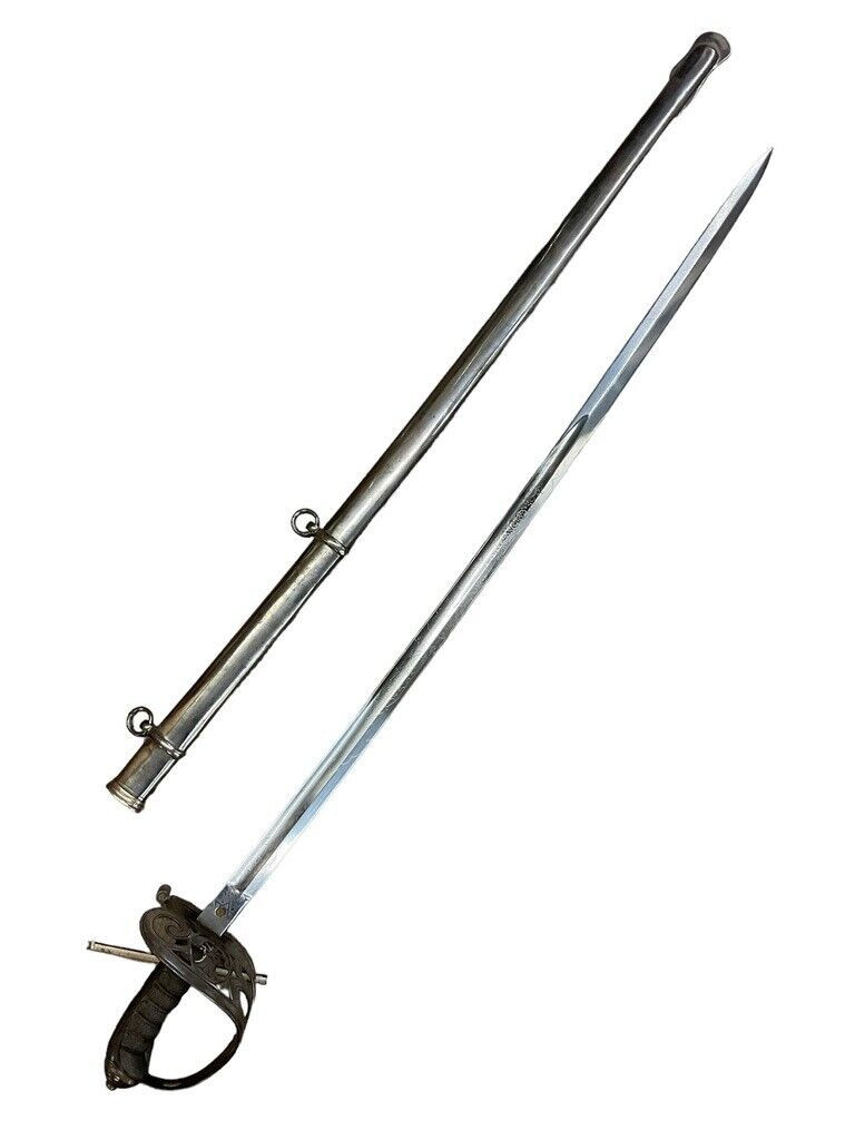 British Victorian Cambridge Rifle Volunteers Sword with Scabbard The British Victorian Cambridge Rifle Volunteers Sword with Scabbard is a remarkable piece of historical craftsmanship that hails from the distinguished era of Queen Victoria’s reign. This sword was specifically associated with the Cambridge Rifle Volunteers, a unit that played a key role in local defense during the 19th century. The sword features a meticulously forged blade that showcases intricate etchings and fine detailing, characteristic of Victorian-era weaponry. Its elegant hilt, adorned with the regiment’s insignia, complements the finely crafted scabbard designed for its safekeeping. The scabbard itself is constructed from high-quality leather and metal fittings, providing both protection and a touch of sophistication to the ensemble. This exquisite sword is not only a testament to the craftsmanship of the period but also a significant artifact representing British military history and the patriotic spirit of the Cambridge Rifle Volunteers.