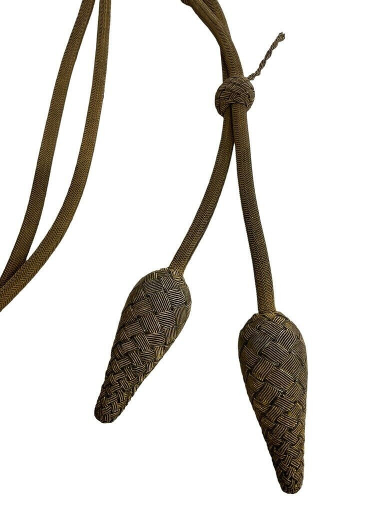This exquisite piece represents the sartorial elegance and historical significance of the British Victorian Cavalry. The Officers Cap Cords, specifically designed for Hussars and Lancers, are meticulously crafted from luxurious gold bullion, exemplifying the high standards of military regalia from the Victorian era. These cap cords were not just functional but also served as a symbol of prestige and rank among officers. Each strand of the cord is intricately woven to reflect the attention to detail and superior craftsmanship characteristic of British military uniforms of that period. Perfect for collectors, historians, or reenactors, this authentic reproduction offers a tangible connection to the noble traditions and valor of Victorian cavalry officers. Whether displayed as a historical artifact or used to add an authentic touch to period uniforms, these gold bullion cap cords are indispensable for anyone with a passion for military history and Victorian finery.