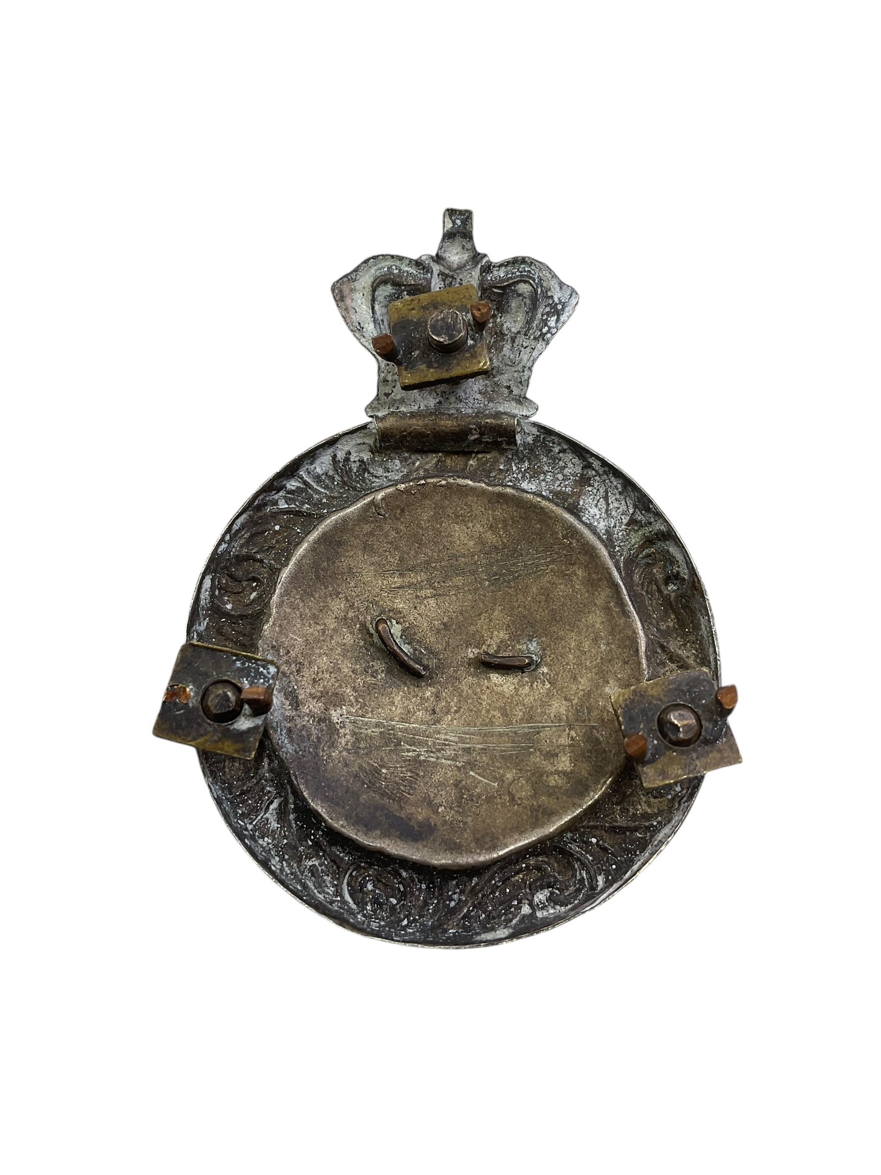 The ‘British Victorian Herefordshire Volunteer Rifle Corps Officers Cross Belt Plate’ is a historical artifact dating back to the Victorian era. This ornate military accessory is an integral part of the uniform of the Herefordshire Volunteer Rifle Corps, an infantry militia from Britain. The cross belt plate, worn across the officer’s uniform, displays intricate designs indicative of Victorian craftsmanship. It is often emblazoned with the emblem of the Corps, reflecting the unit’s dedication and valor. Made from durable material of silver, it’s not only a symbol of authority but also a testament to the robustness of Victorian manufacturing techniques. This piece of military history offers valuable insight into the regalia of British volunteer soldiers during the Victorian period. Collectors and history enthusiasts alike would appreciate this item for its historical significance and aesthetic appeal.