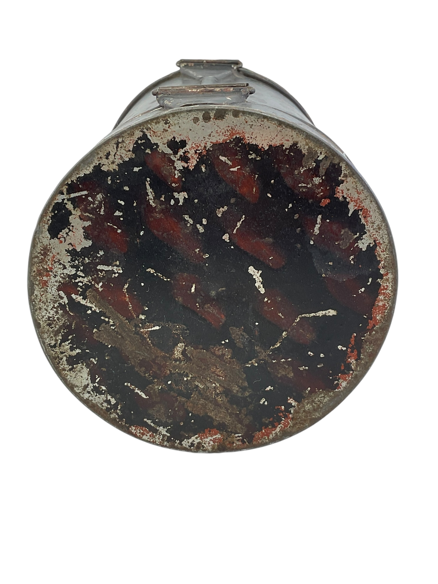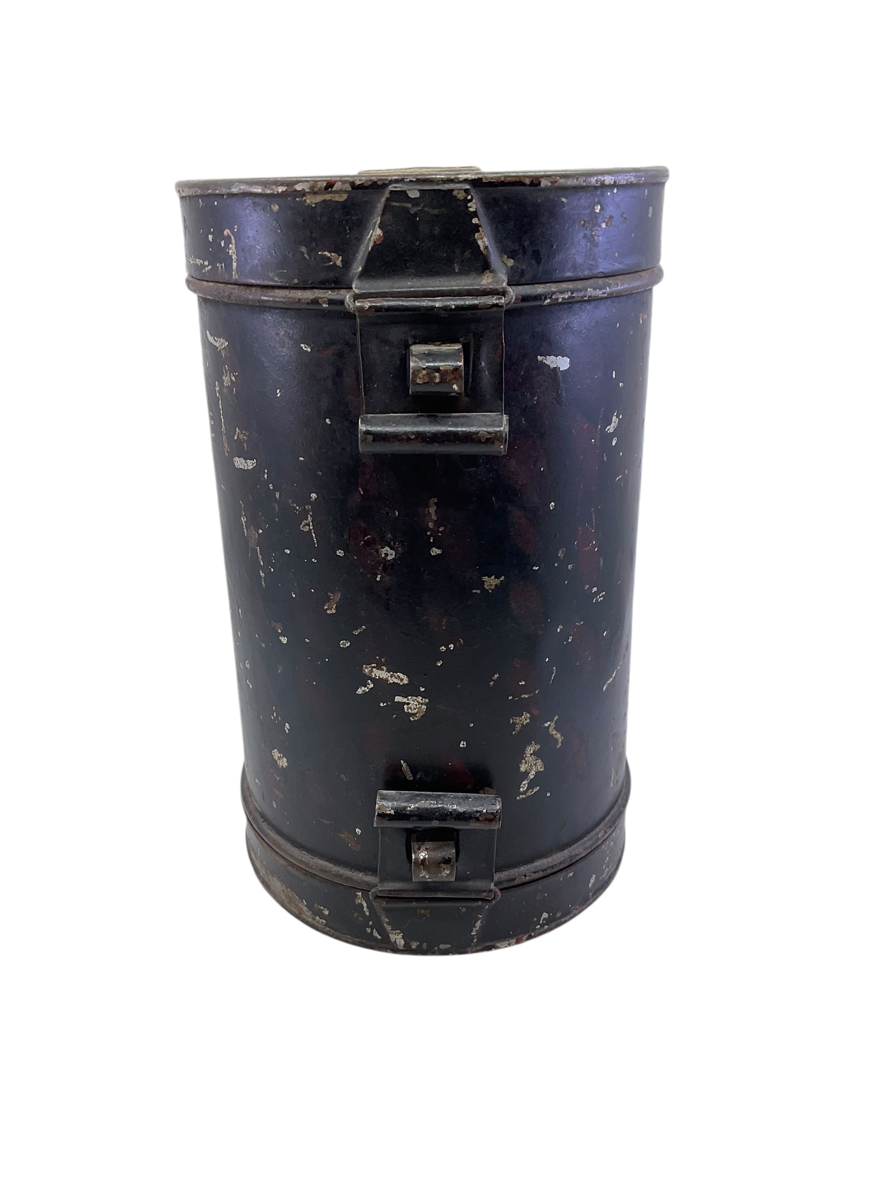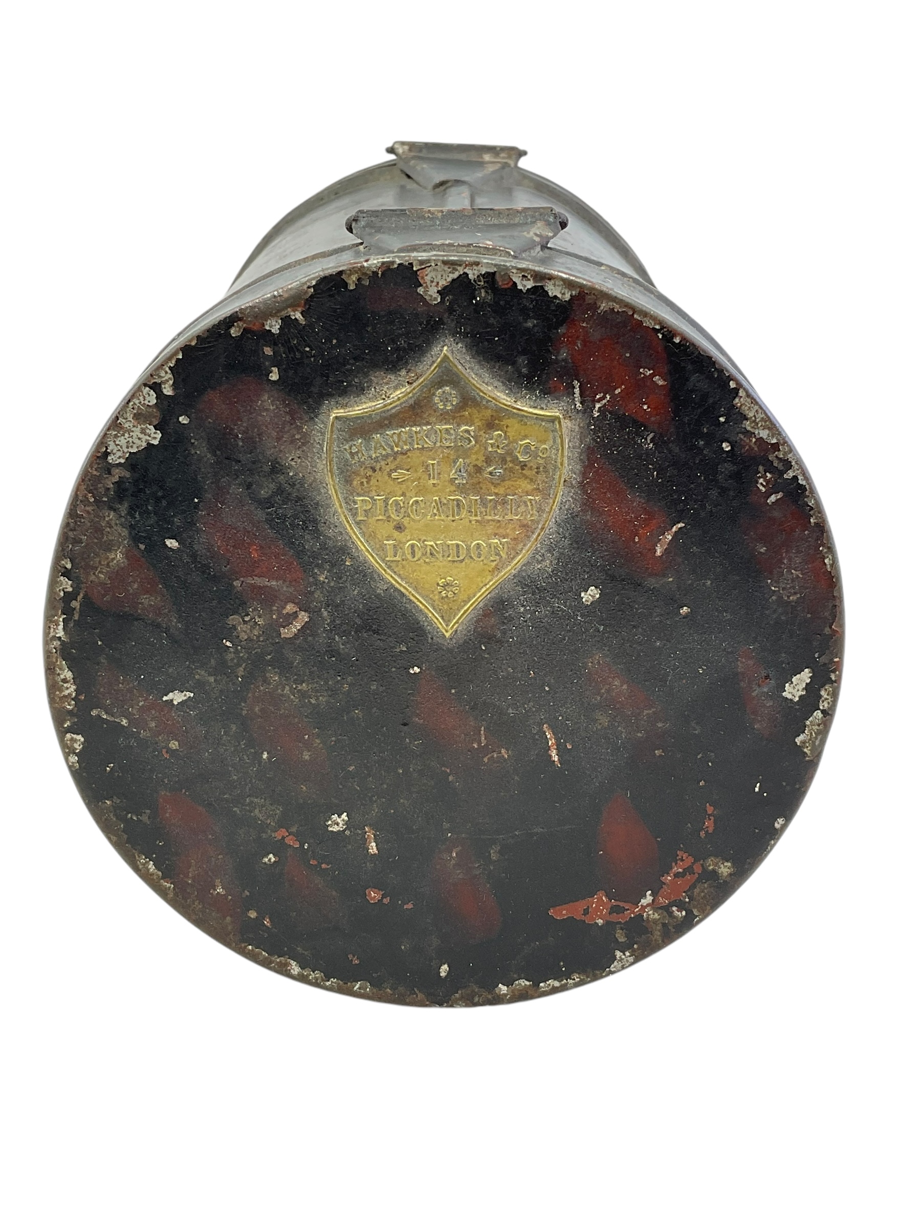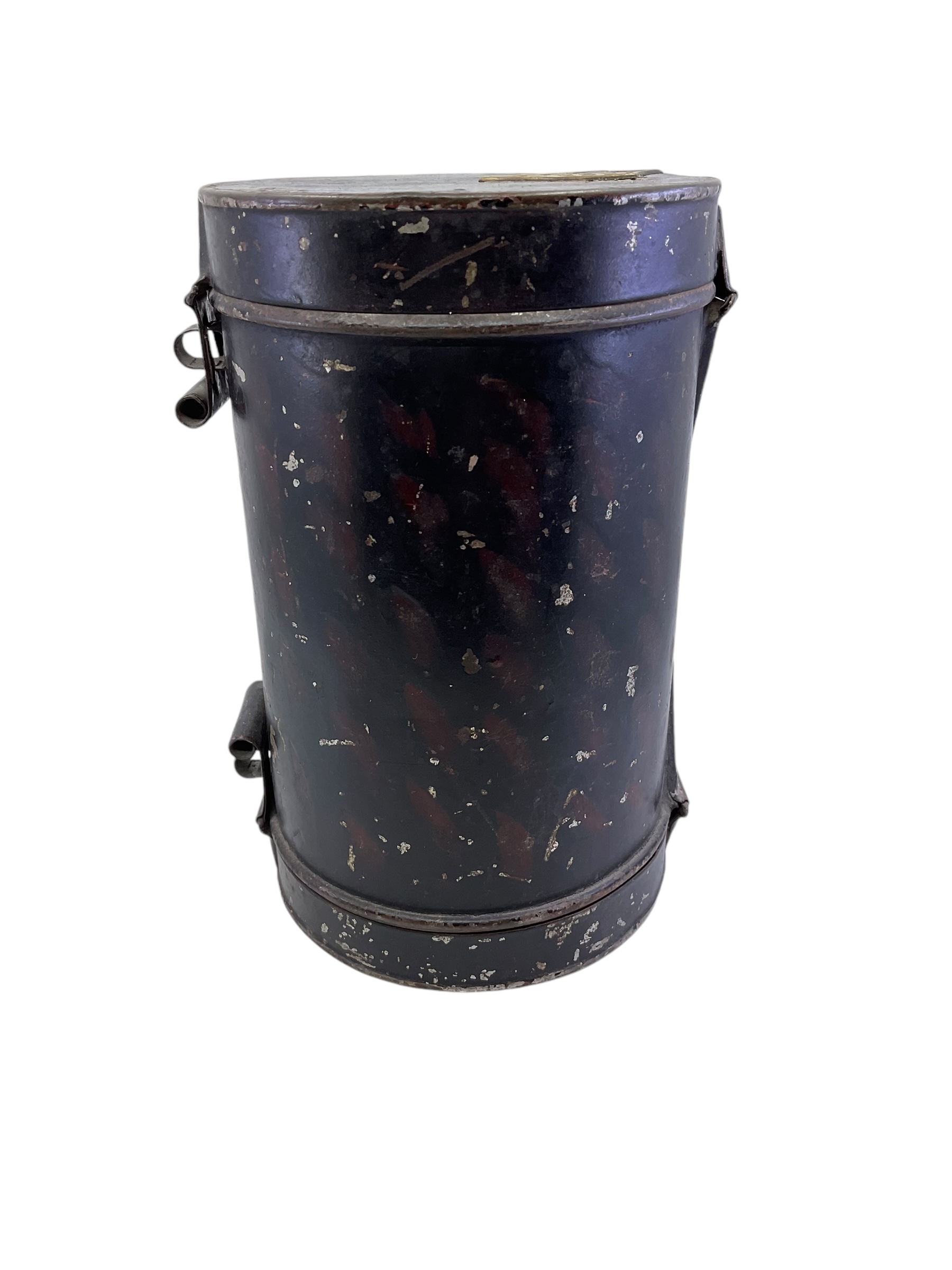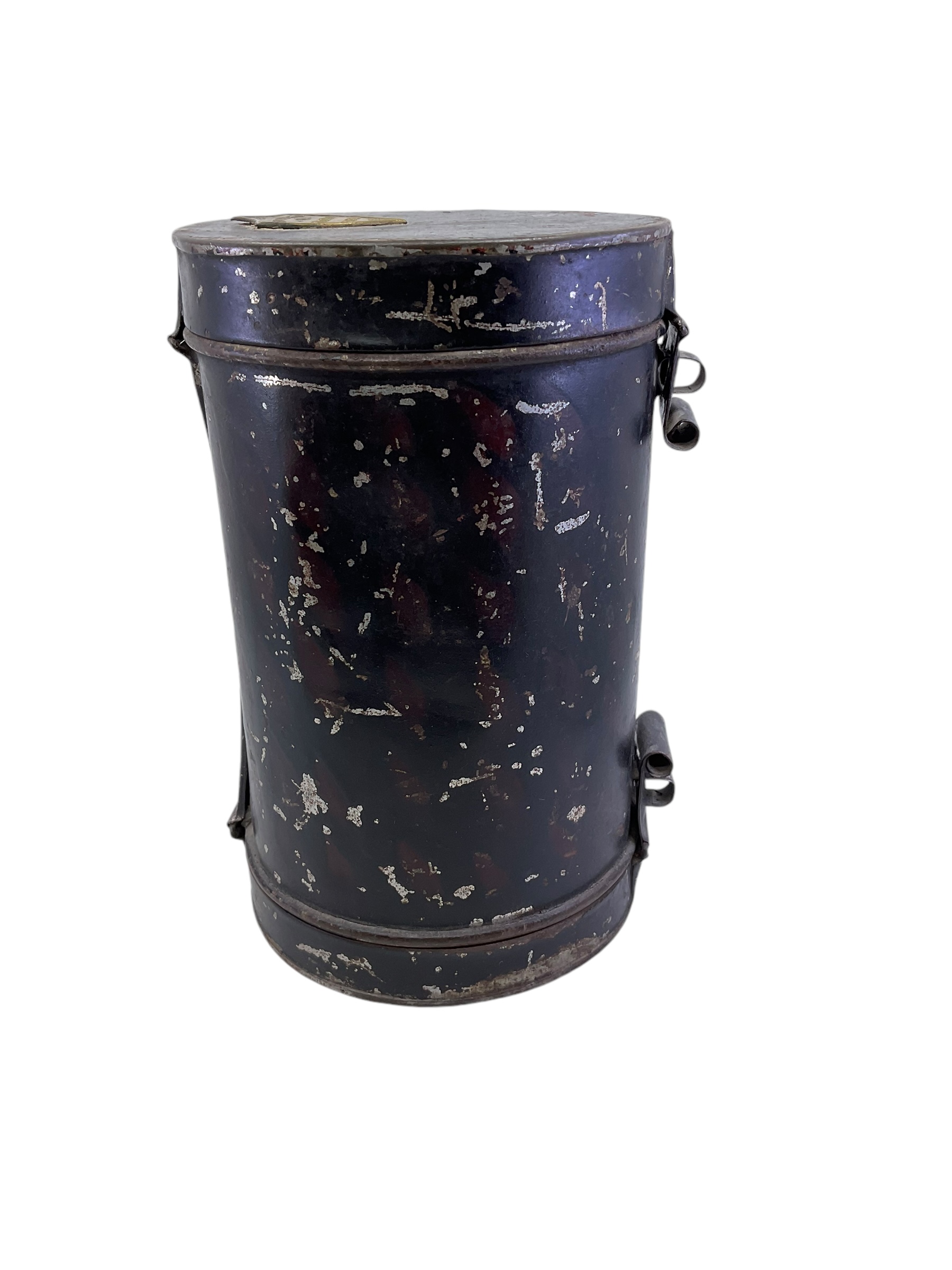 This exquisite British Victorian Japanned Tin Helmet Plume Case is a unique piece of historical memorabilia from the Victorian era. Crafted with fine attention to detail, the case is made from Japanned tin, a process that involves painting metal to give it a glossy finish. The case was used to store and protect the plume or crest of a Victorian-era helmet, a key element of military dress during this period. Rich with history, the plume case exhibits a high level of craftsmanship. It is not only a functional item but also an artistic object reflecting the aesthetic sensibilities of the Victorian era. This piece would make a remarkable addition to any collection of military memorabilia, British historical artifacts, or Victorian-era items.