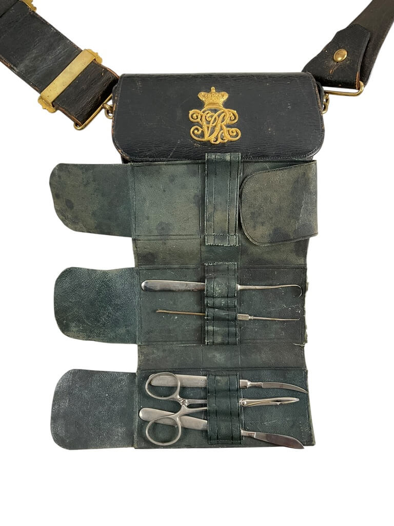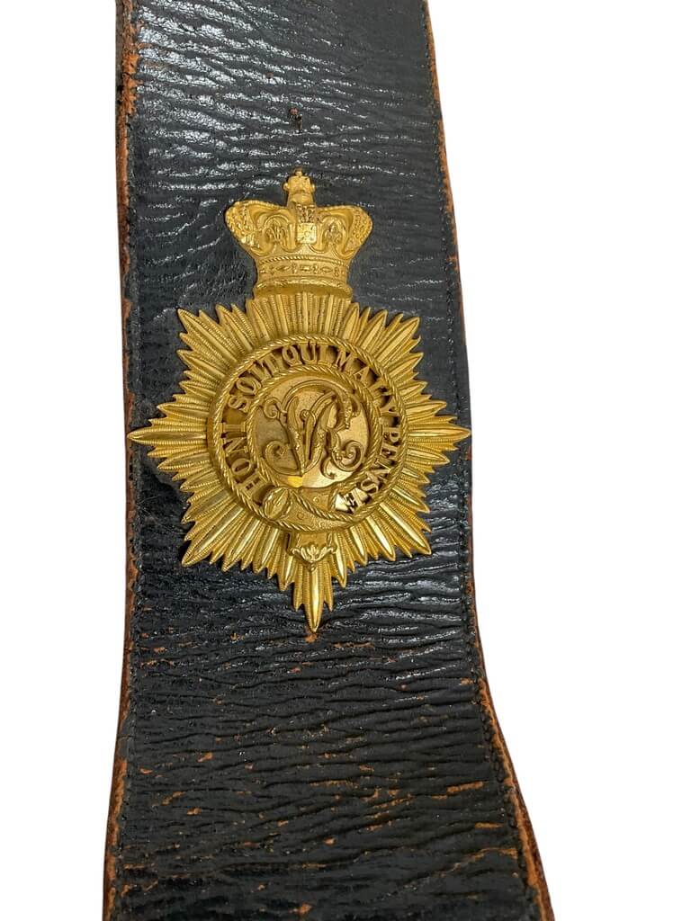 The ‘British Victorian Medical Officers Undress Cross Belt and Pouch’ is a historic piece of military medical equipment from the Victorian era. It is a prime example of the regalia worn by medical officers serving in the British army during the reign of Queen Victoria. The undress cross belt is a broad leather strap, worn diagonally across the chest, which was a common part of military uniforms at the time. Attached to it is a pouch, used for carrying medical supplies such as bandages, antiseptics, and other essential tools. The belt and pouch are crafted with exceptional skill, reflecting the importance of medical officers on the battlefield. This artefact offers a fascinating glimpse into the past, showcasing the intersection of military service and medical care during a crucial period in British history.