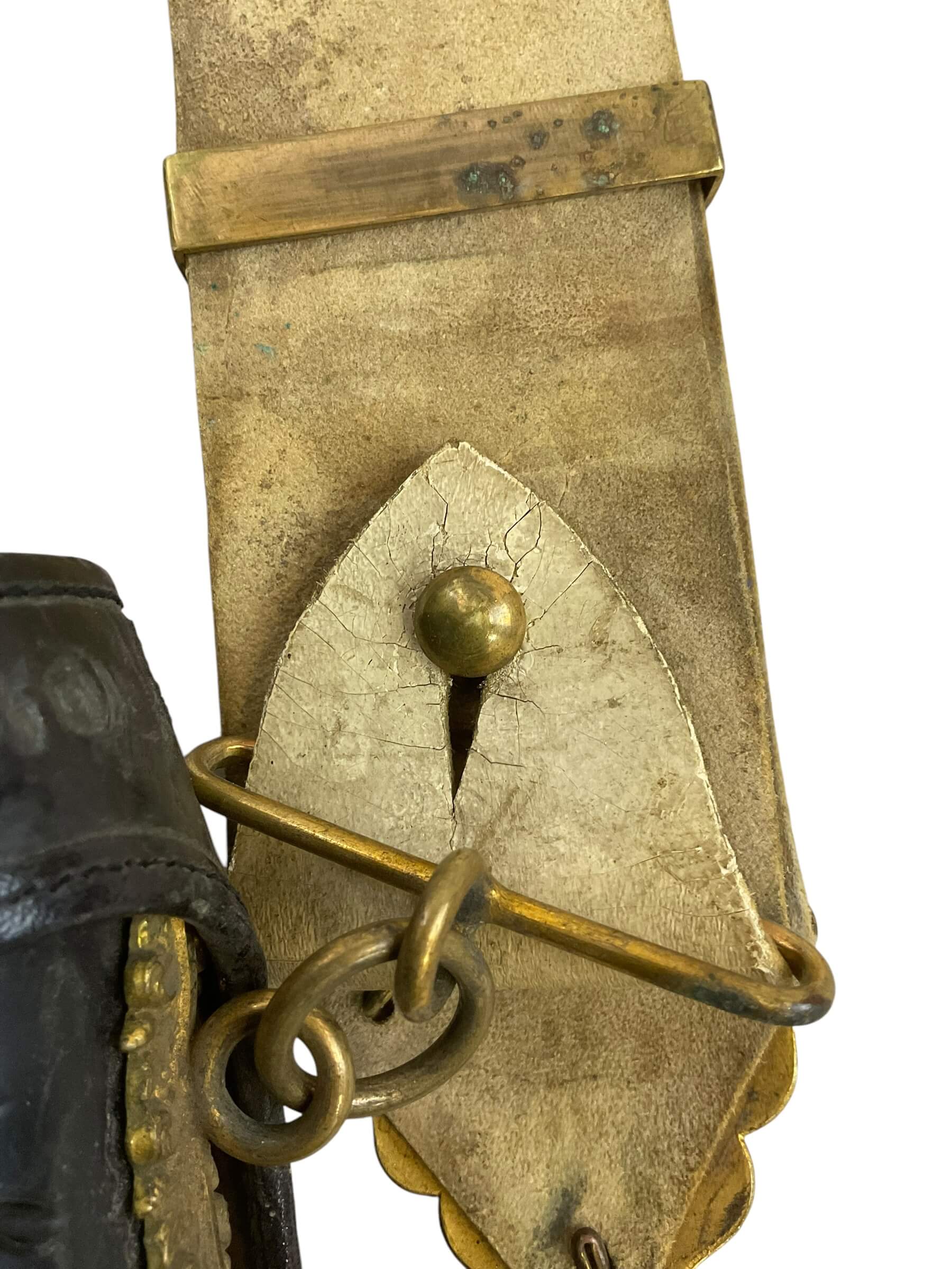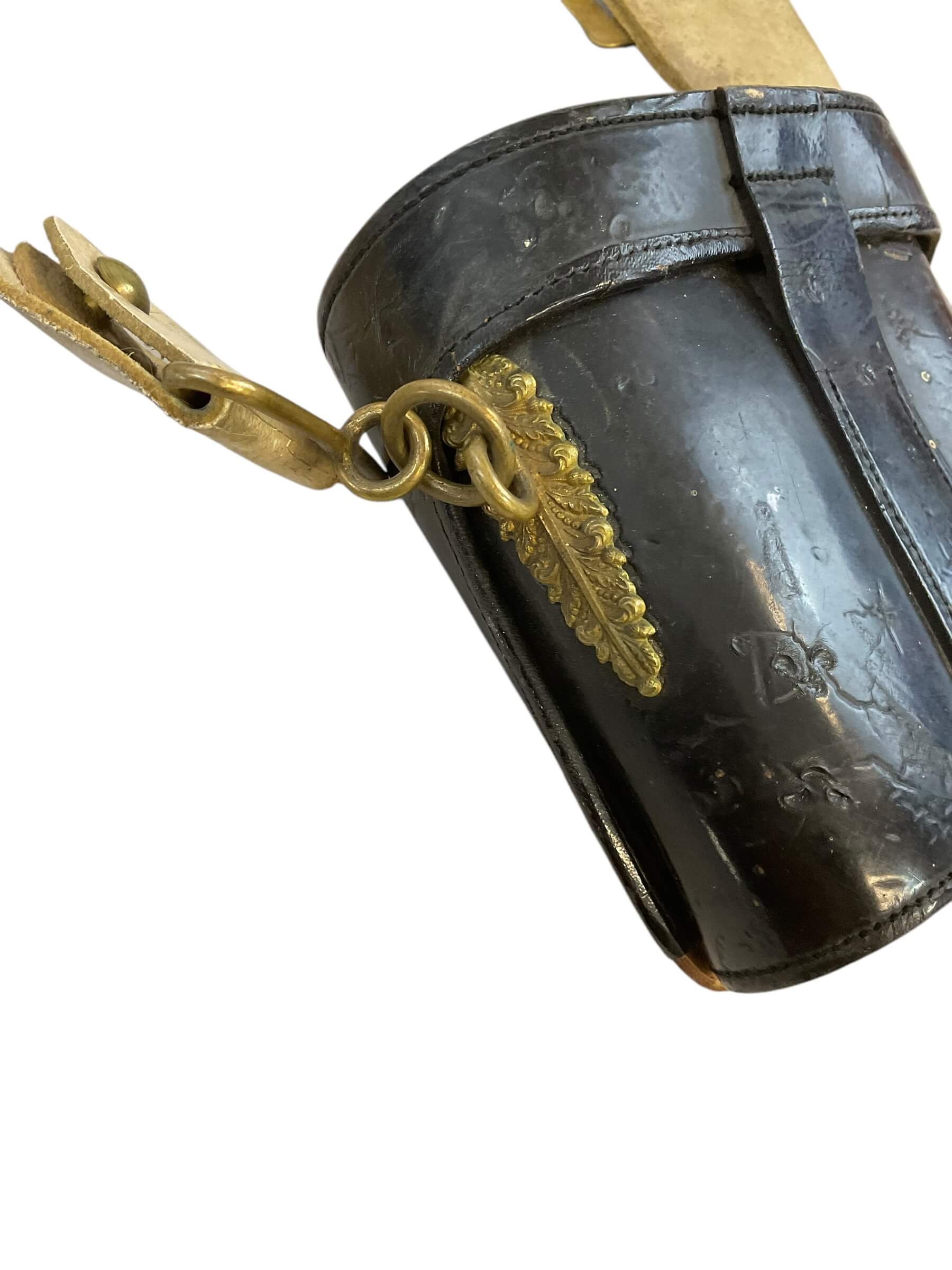 This exquisite binoculars case is a classic example of British Victorian craftsmanship, designed specifically for military officers of the era. Made from high-quality, durable leather, it has been meticulously preserved and still retains the elegant charm of the late 19th century. The case features a secure closure mechanism that is both sturdy and easy to operate, ensuring the safety of the binoculars within. A highlight of this piece is the original leather shoulder strap, which is adjustable and allows for comfortable carrying over long distances. This strap adds a practical touch to the case, making it a functional historical artifact. The case, with its rich patina and authentic design, gives you a unique opportunity to own a piece of military history. It’s a must-have for collectors and enthusiasts of British Victorian memorabilia.