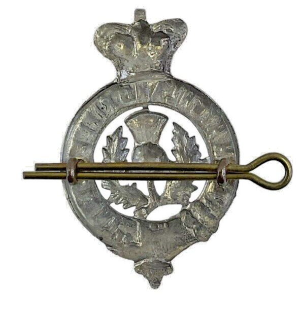 The British Victorian Perth Highland Rifle Volunteers Glengarry Cap Badge is a distinguished piece of military history. Characterized by its intricate design, this badge was worn with pride by the Perth Highland Rifle Volunteers during the Victorian era. The badge typically features emblematic Scottish symbols, such as the thistle, and often includes the regiment’s motto or initials, reflecting the rich heritage and valor of the unit. Made from high-quality metal, usually brass or white metal, it was designed to be attached to the Glengarry cap, a traditional Scottish military headgear. This artifact not only represents the craftsmanship of the period but also serves as a tangible reminder of the dedication and service of the volunteers who played a crucial role in local defense. Collectors and historians alike treasure these badges for their beauty, historical significance, and the glimpse they offer into Britain’s military past.