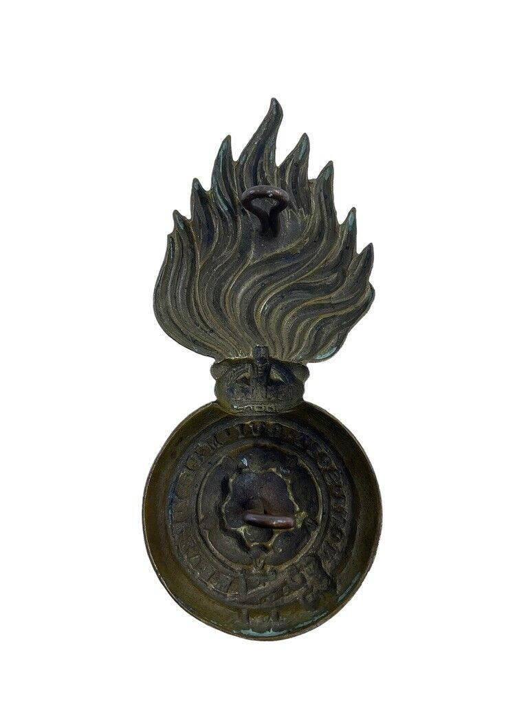 The British Victorian Royal London Fusiliers Bear Skin Hat Cap Badge Insignia is a distinguished piece of military regalia. This emblem, originating from the Victorian era, represents the storied history of the Royal London Fusiliers, an esteemed infantry regiment. Crafted with meticulous attention to detail, the cap badge features traditional elements characteristic of the period, designed to adorn the iconic bearskin hats worn by the regiment. These badges were proudly worn by soldiers, symbolizing honor, bravery, and dedication to duty. The insignia typically includes intricate designs, reflective of Victorian artistry and craftsmanship, serving as a testament to the rich martial heritage of the Fusiliers. Collectors and historians alike treasure this badge for its historical significance and its embodiment of a bygone era of British military tradition. Owning such an artifact offers a tangible connection to the past, honoring the legacy of those who served.