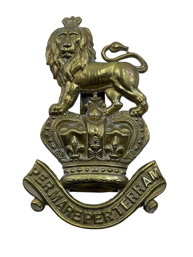 The British Victorian Royal Marines Valise Backpack Badge is a distinguished historical artifact, representing the valor and tradition of the Royal Marines during the Victorian era. Intricately crafted, this badge would have adorned the valise backpack of a marine, signifying their esteemed position within the military ranks. It reflects the rich heritage and meticulous design synonymous with British military insignia of the time. Made from durable materials, the badge features iconography that highlights the pride and identity of the Royal Marines, including potentially detailed engravings or symbols such as anchors, crowns, or ceremonial motifs. Collectors and history enthusiasts highly value such badges for their connection to the era’s military history and craftsmanship. This emblem not only served a practical purpose but also stood as a testament to the honor and duty of those who served in one of the British Empire’s most formidable military units.