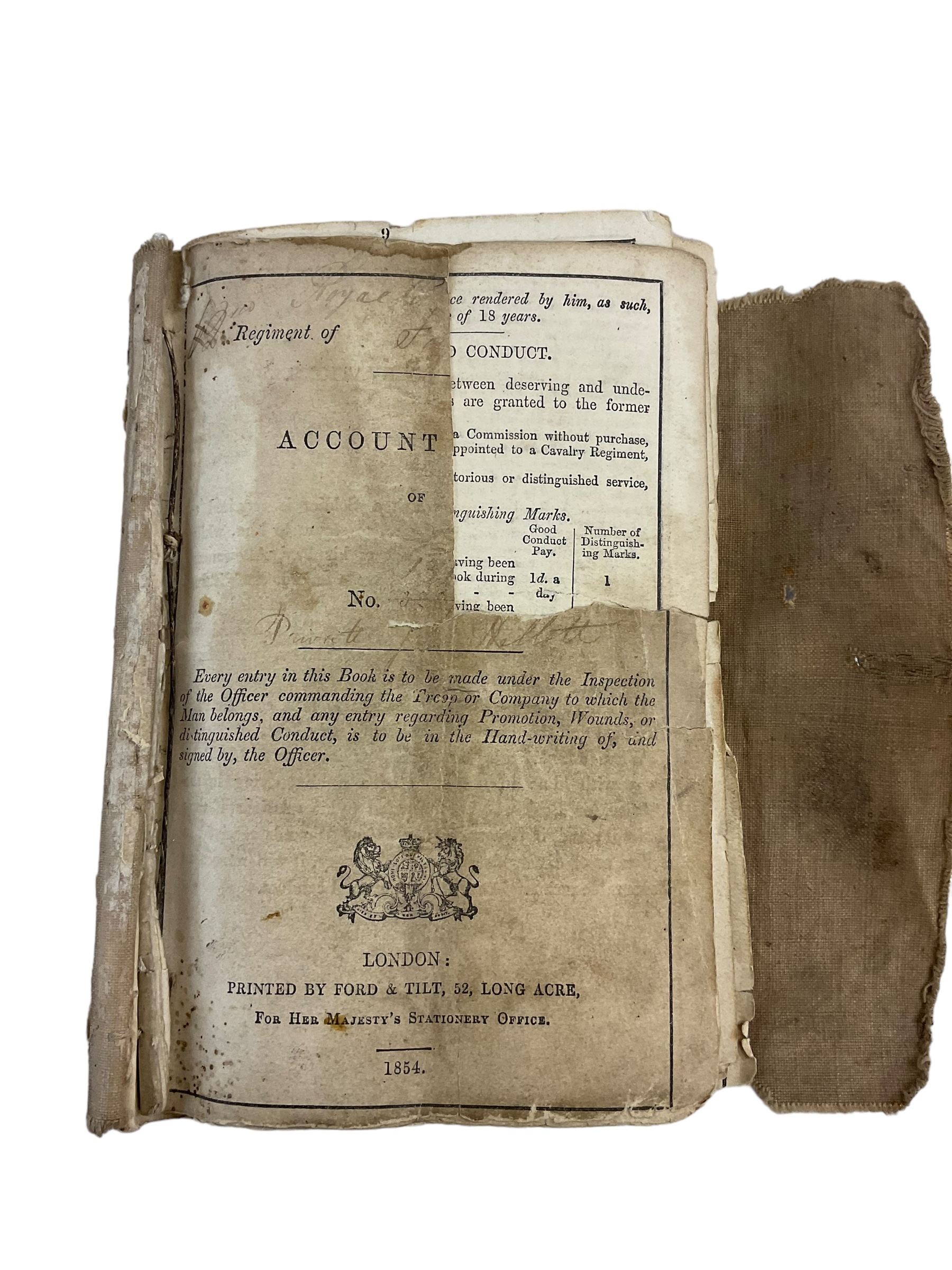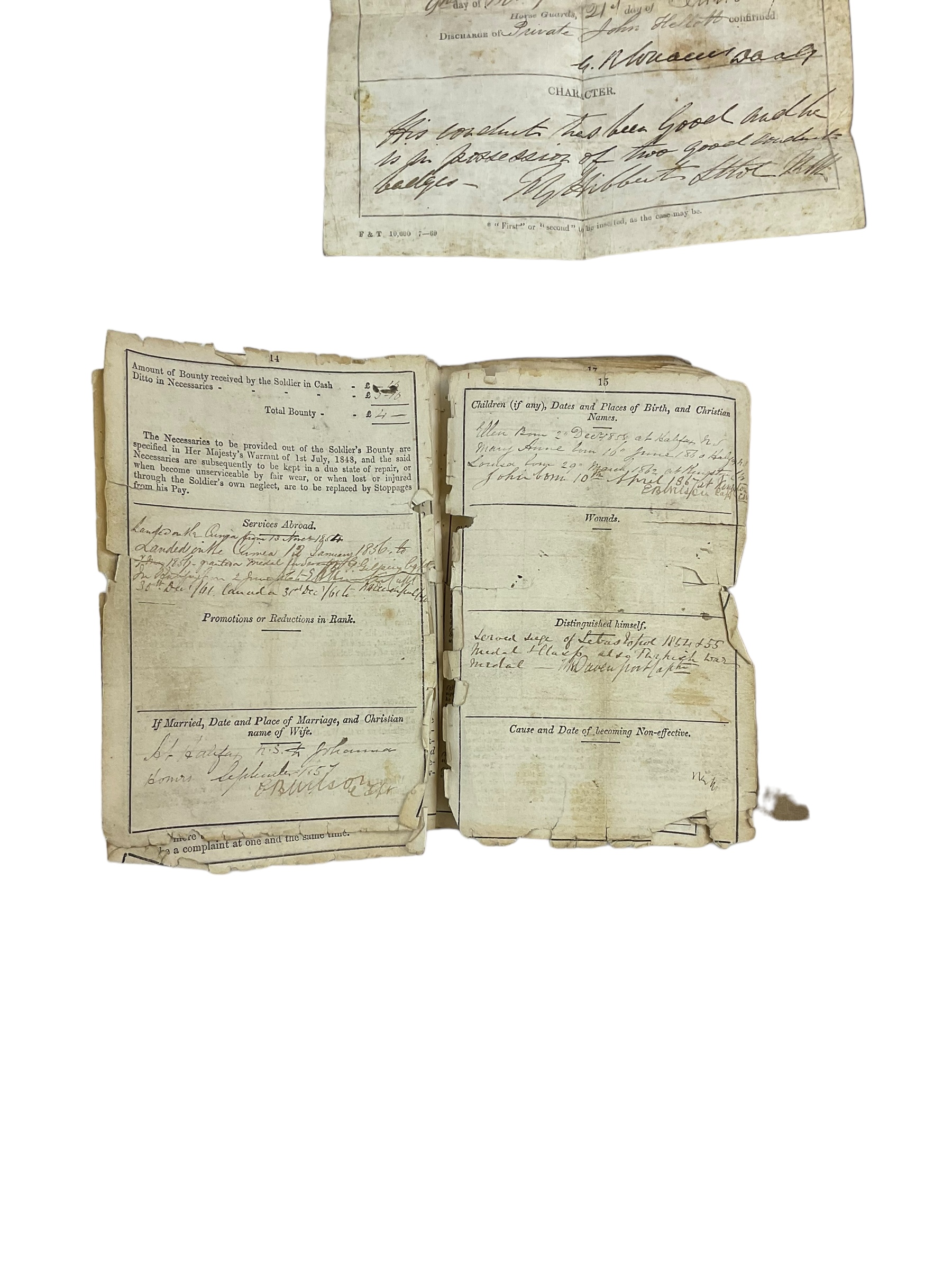 British Victorian Service Book and Parchment Certificate Crimean War Royal Canadian Regiment of Rifles