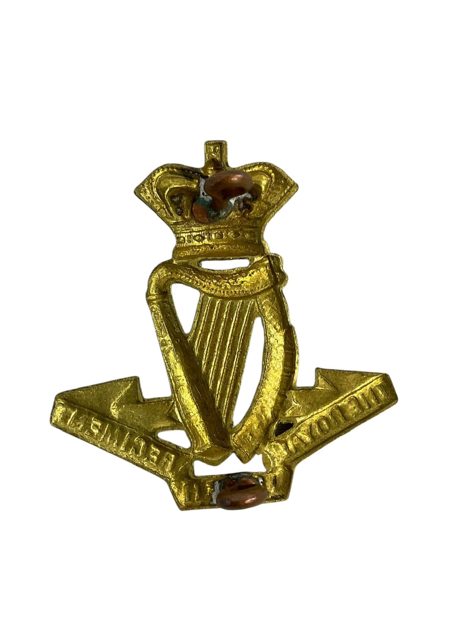 The ‘British Victorian The Royal Irish Regiment Cap Badge’ is a highly sought-after military collectors’ item. Crafted in the Victorian era, this unique badge was an emblem of the Royal Irish Regiment, a prestigious infantry regiment of the British Army. It boasts intricate design features typical of the period, including the iconic Victorian crown, harp and a scroll inscribed with the regiment’s motto, ‘Virtutis Namurcensis Praemium’. This cap badge was worn by soldiers as a symbol of their loyalty and commitment to the regiment and the Crown. The striking design and historical significance of this badge make it a valuable piece for collectors and history enthusiasts alike. Each badge is a testament to the bravery and dedication of the Royal Irish Regiment during the Victorian era, a remarkable period in British military history.
