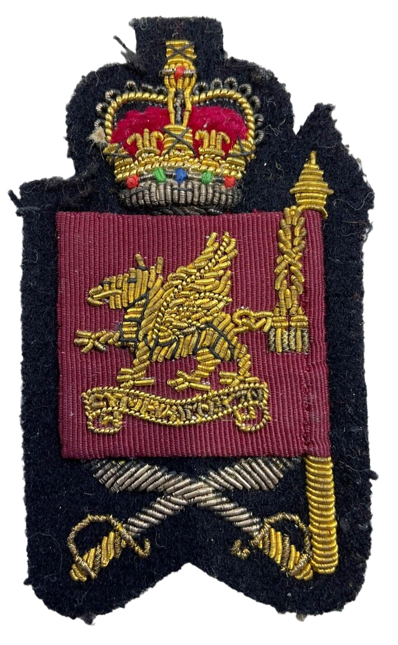 The British Welsh Guards Colour Sergeant Bullion Patrols Sleeve Patch Insignia is a distinguished military emblem worn by Colour Sergeants of the prestigious Welsh Guards regiment. This insignia, meticulously crafted with bullion embroidery, features the iconic symbols and colors associated with the Welsh Guards, showcasing the regiment’s storied heritage and proud traditions. The patch is typically adorned on the sleeve, signifying the important role and rank of a Colour Sergeant. With its intricate design and high-quality craftsmanship, this sleeve patch is a testament to the elite status and professional excellence of its wearer. Whether displayed as part of a ceremonial uniform or in active duty, the insignia embodies the honor, duty, and dedication of the Welsh Guards, making it a coveted and respected symbol within the British Army.