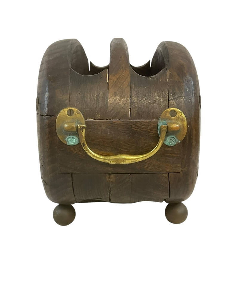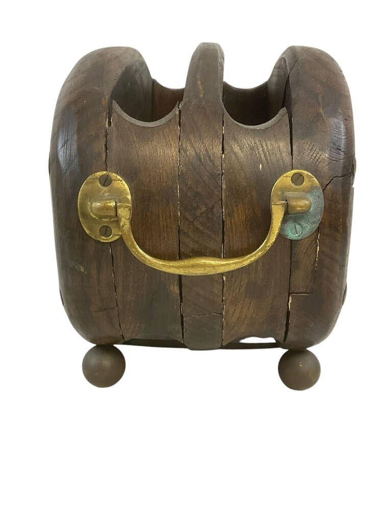 This unique and creative piece, titled ‘British Wooden Wood Block and Tackle Converted to Magazine Rack’, is a delightful blend of vintage charm and functional design. Originally used in British maritime expeditions, the wooden block and tackle system has been cleverly converted into a practical magazine rack. The natural, rustic appearance of the wood block, complete with its original pulleys, lends an undeniable authenticity to this piece. The sturdy design ensures a secure storage for your favourite reads, while the original rope adds an intriguing visual element. This item not only serves as a functional magazine rack but also as a conversation piece, bringing a touch of nautical history and British heritage into your home or office. It is a perfect blend of form and function, and a testament to innovative repurposing.