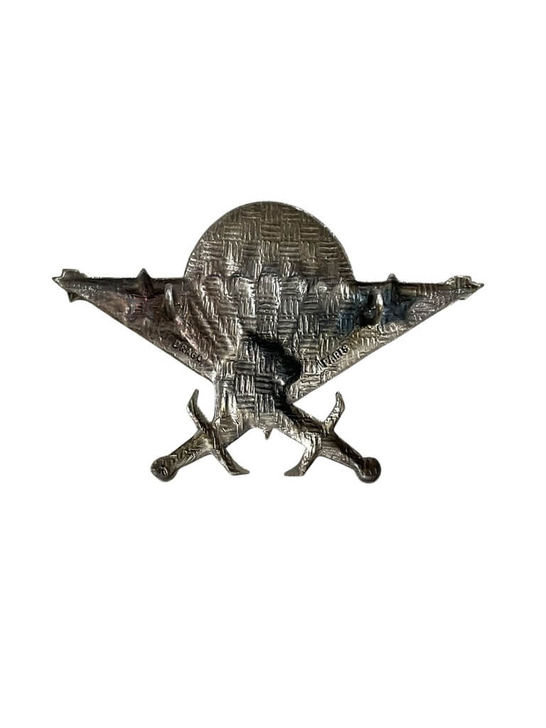 The ‘Cameroon Airborne Parachute Jump Wing’ is a prestigious emblem representing the skill, courage, and dedication of Cameroon’s airborne forces. It is a badge of honor earned by those who have successfully completed the rigorous parachute training and have executed jumps in real-world operations. This highly coveted insignia features a parachute design, symbolizing the airborne capabilities of the forces, often combined with the national emblem of Cameroon, which underlines their loyalty and commitment to their homeland. The ‘Cameroon Airborne Parachute Jump Wing’ is not merely a military decoration; it is a testament to the bravery and discipline of the servicemen and women who wear it. This iconic emblem fosters camaraderie among the airborne troops and signifies their readiness to defend their country from the skies.