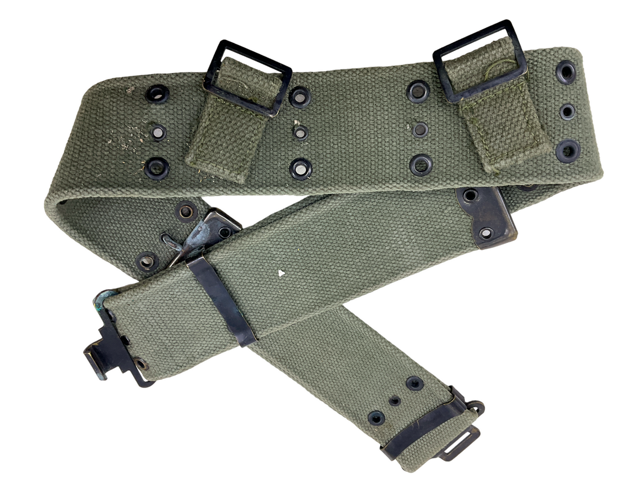 The Canadian 1951 Pattern Web Belt, dated 1968, is a significant piece of military history. Originally designed in the early 1950s, this web belt was a standard-issue for Canadian forces, manufactured to endure the rigors of military use. Crafted from durable webbing material, it features robust metal hardware for secure fastening and adjustment. Dated 1968, this particular belt represents a version used during a crucial period of the Cold War, reflecting the evolution of military gear through the decades. Collectors and enthusiasts of military memorabilia will appreciate its historical value and practical design, showcasing the craftsmanship and functional requirements of mid-20th century military equipment. Whether for display or study, the Canadian 1951 Pattern Web Belt stands as a testament to the enduring legacy of military innovation and the unwavering commitment to quality and reliability.