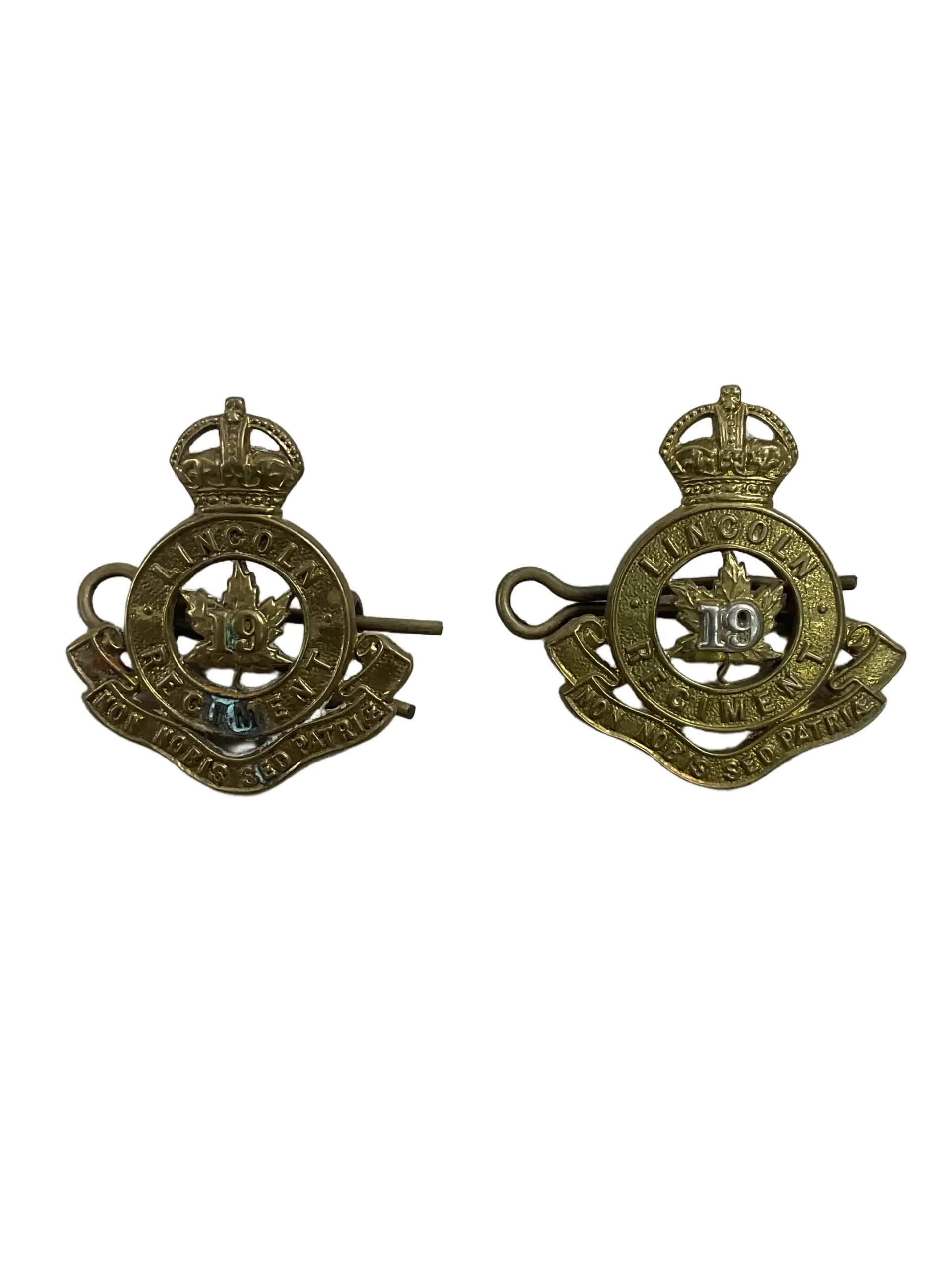 Canadian 19th Lincoln and Welland Regiment Officer’s Collars Insignia Pair