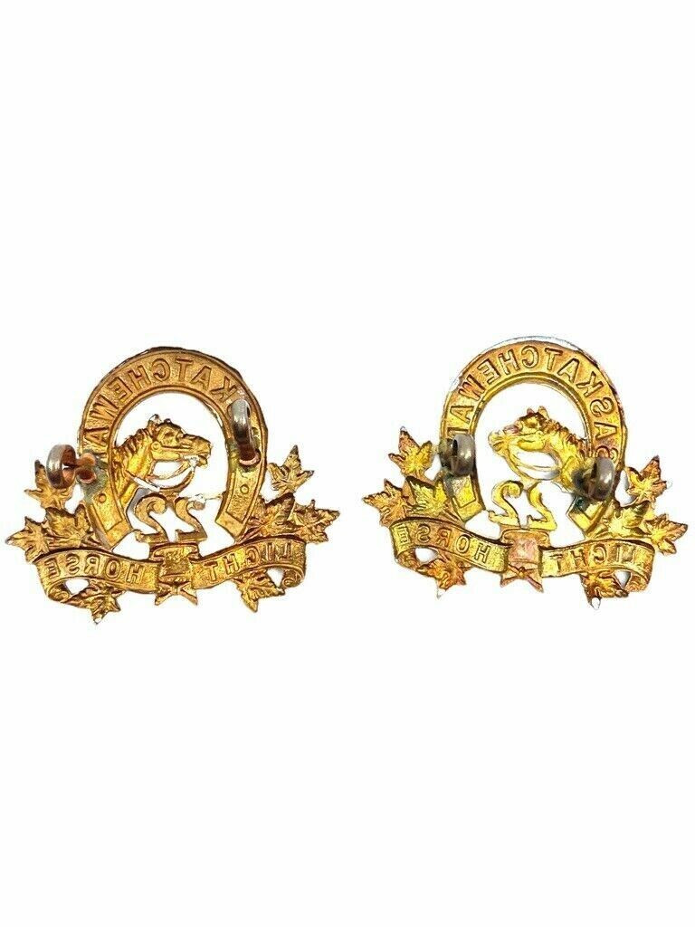 Canadian 22nd Saskatchewan Light Horse Collars Insignia Pair complete with lugs on the back