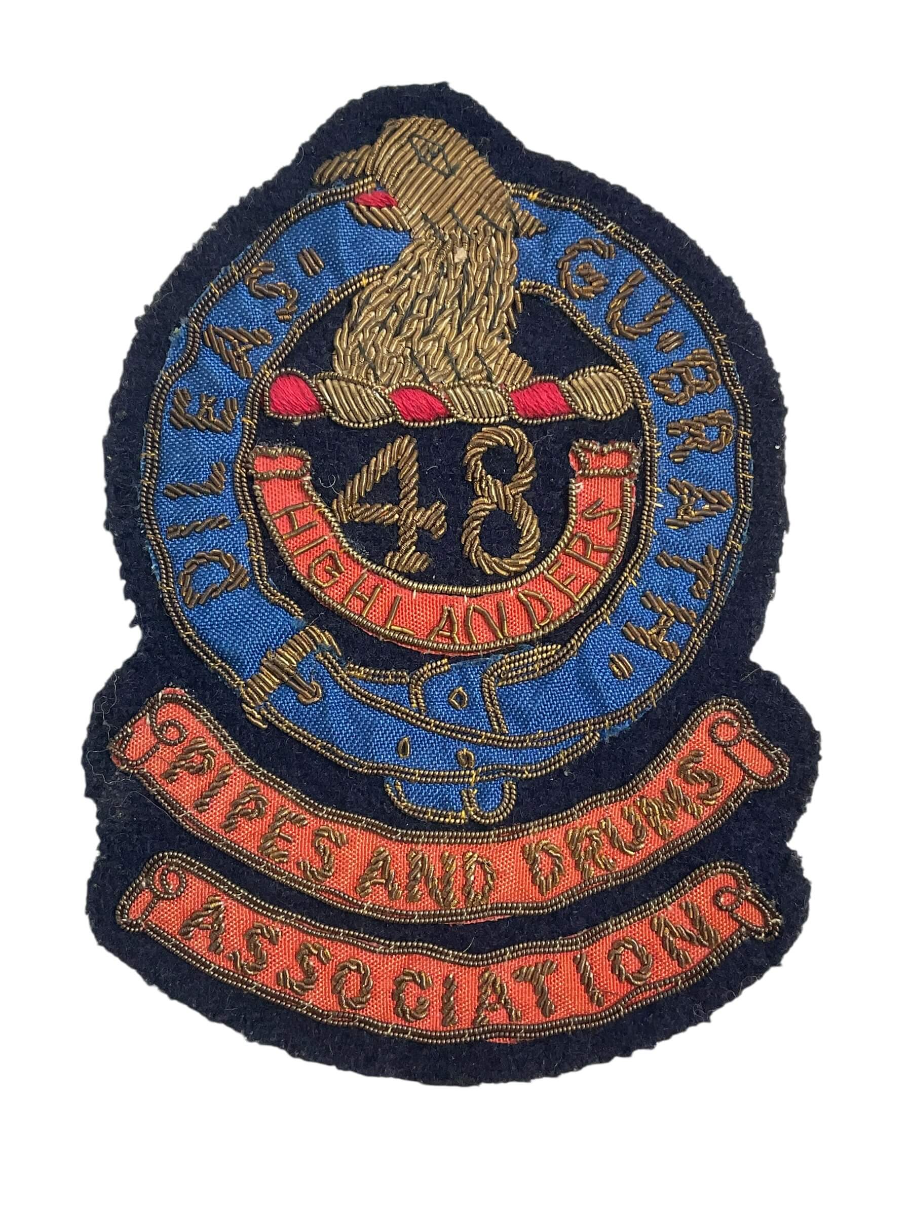 Canadian 48th Highlanders Pipes and Drums Association Bullion Wire Blazer Crest