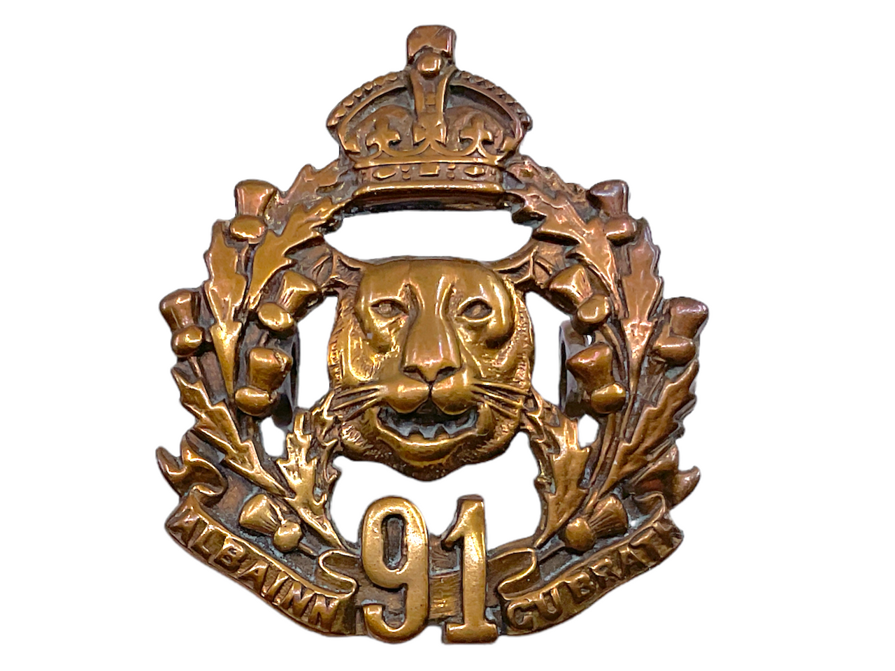 Canadian 91st Argyll & Sutherland Highlanders Brass Collar Badge