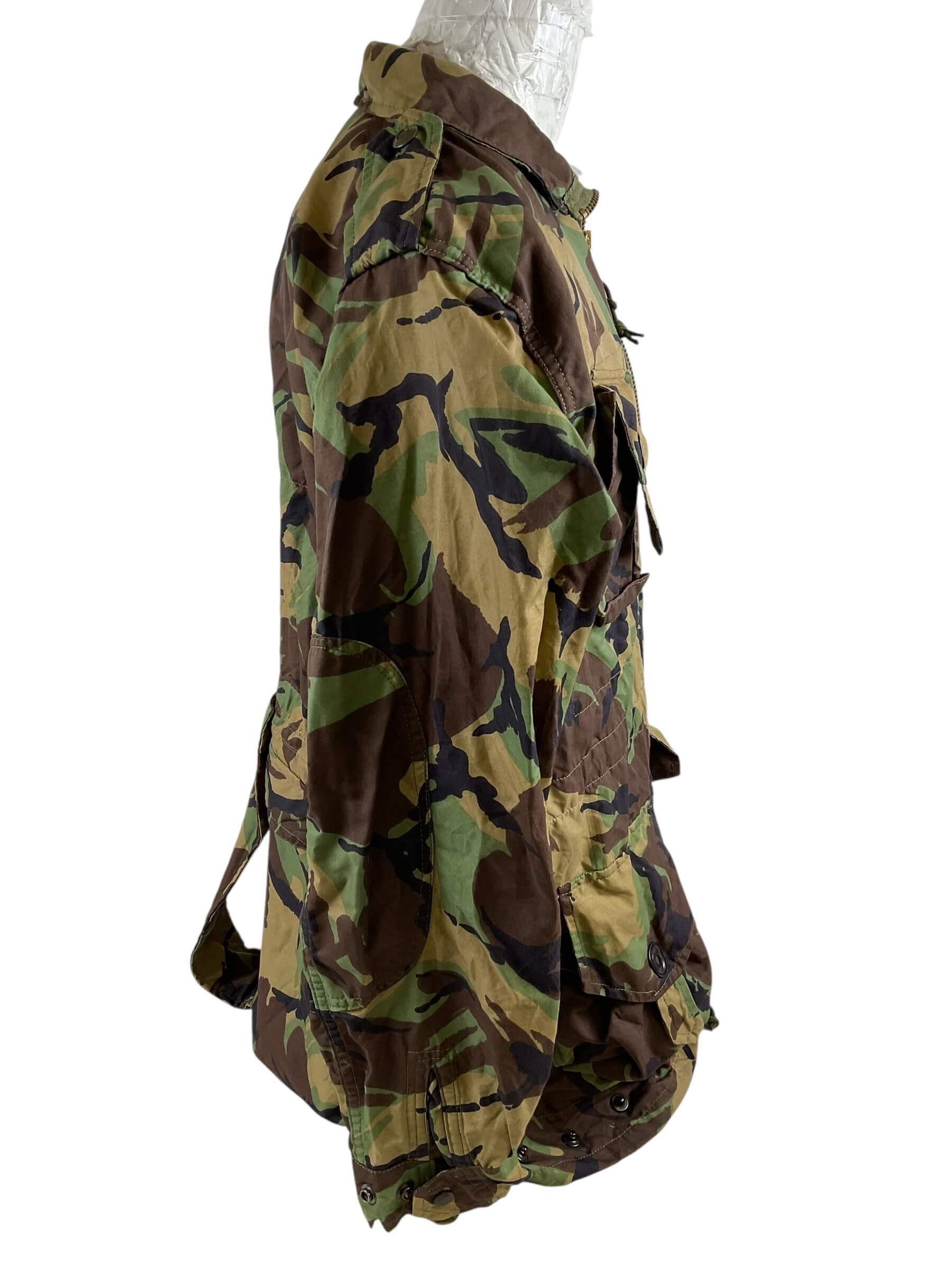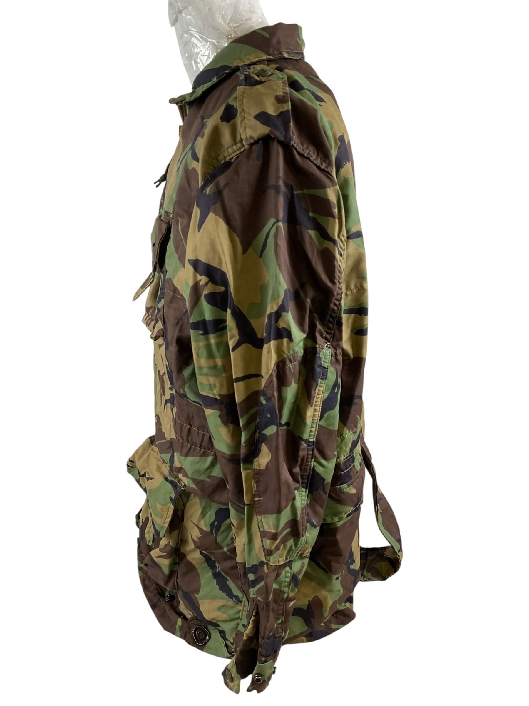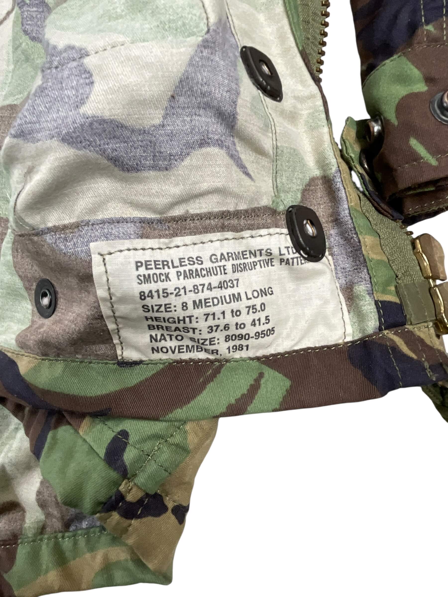The Canadian Airborne Regiment Camouflage Jump Smock Size 8 is an authentic piece of military apparel, designed for airborne operations and field duties. This jump smock is made with durable, high-quality materials to withstand the rigors of various demanding environments. The size 8 smock offers a comfortable fit for medium-sized individuals. It features a distinctive camouflage pattern, aiding in concealment during field operations. The design includes numerous pockets for storage, a full-front zipper for ease of wearing, and reinforced elbows for added durability. It’s an ideal piece for military enthusiasts, collectors, or individuals seeking reliable outdoor gear. This item, worn by the members of the Canadian Airborne Regiment, truly embodies resilience and functionality.