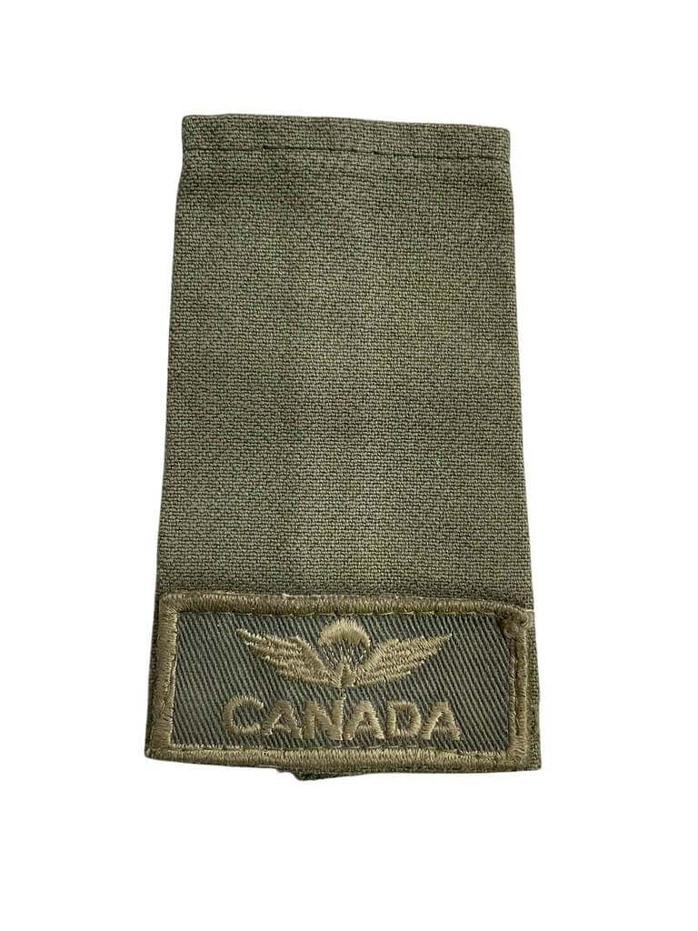 The ‘Canadian Airborne Regiment OD Green Slip-On Single’ is a specially designed military accessory, intended for members of the Canadian Airborne Regiment. This slip-on is fabricated in the standard olive drab (OD) green, a color synonymous with military uniforms worldwide. Its primary function is to denote the rank of its wearer, providing an easy and quick identification system for troops in the field. It is crafted with utmost precision, ensuring its durability even in harsh conditions. This single slip-on is easy to attach and remove, offering the highest levels of convenience to the wearer. It is an authentic piece of military attire, providing a touch of authenticity to your military collection.