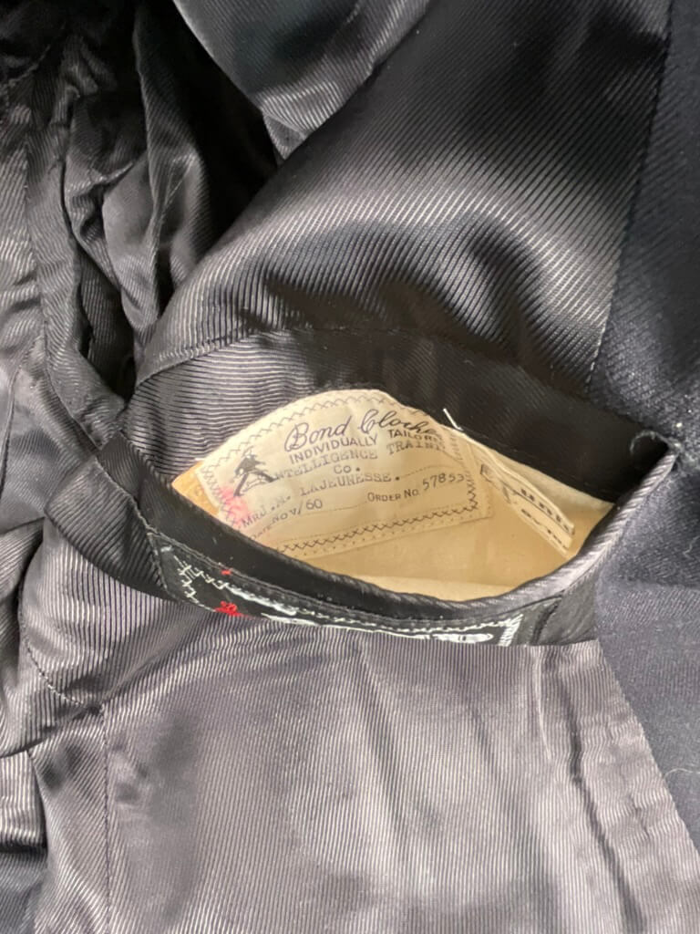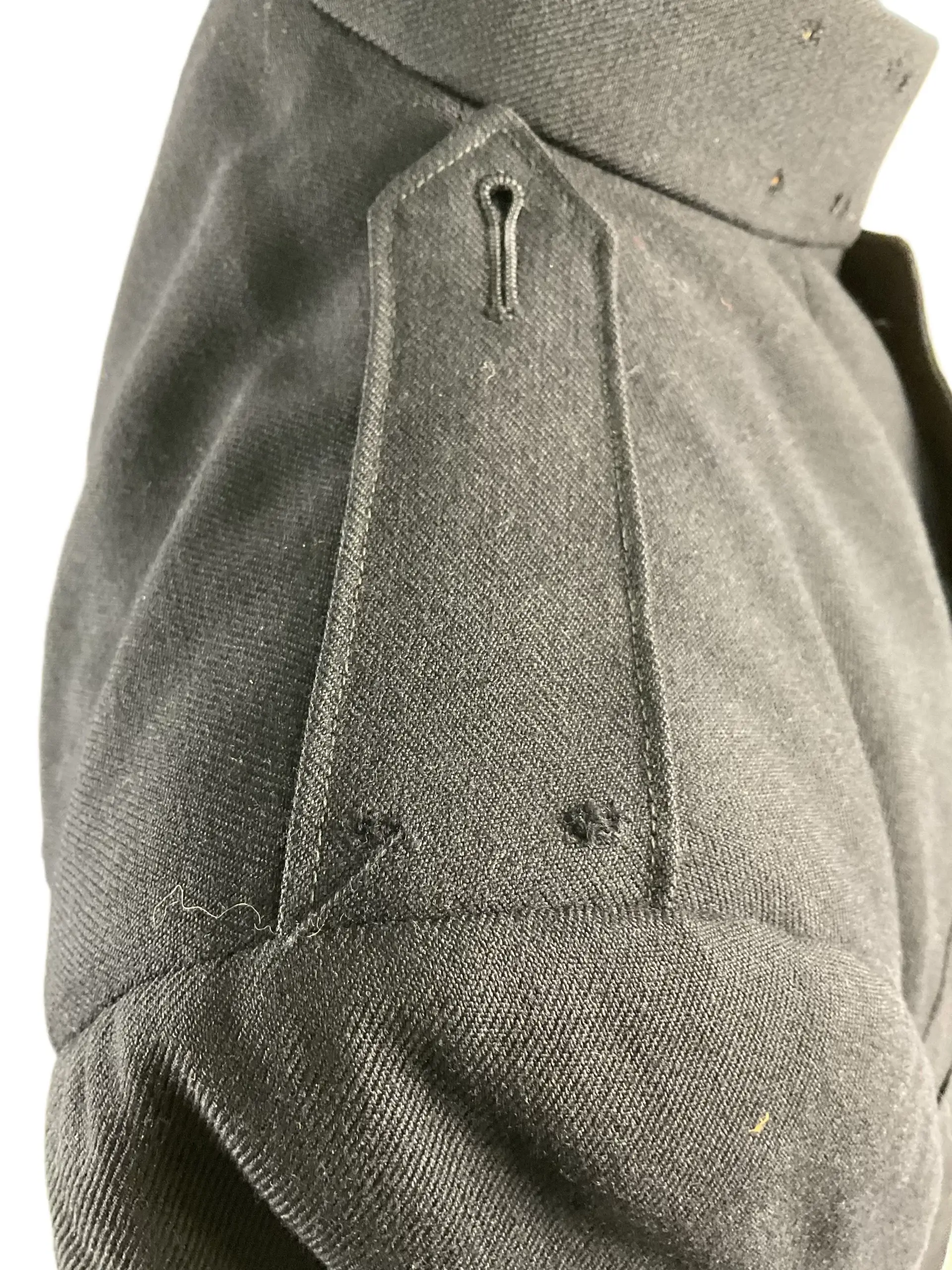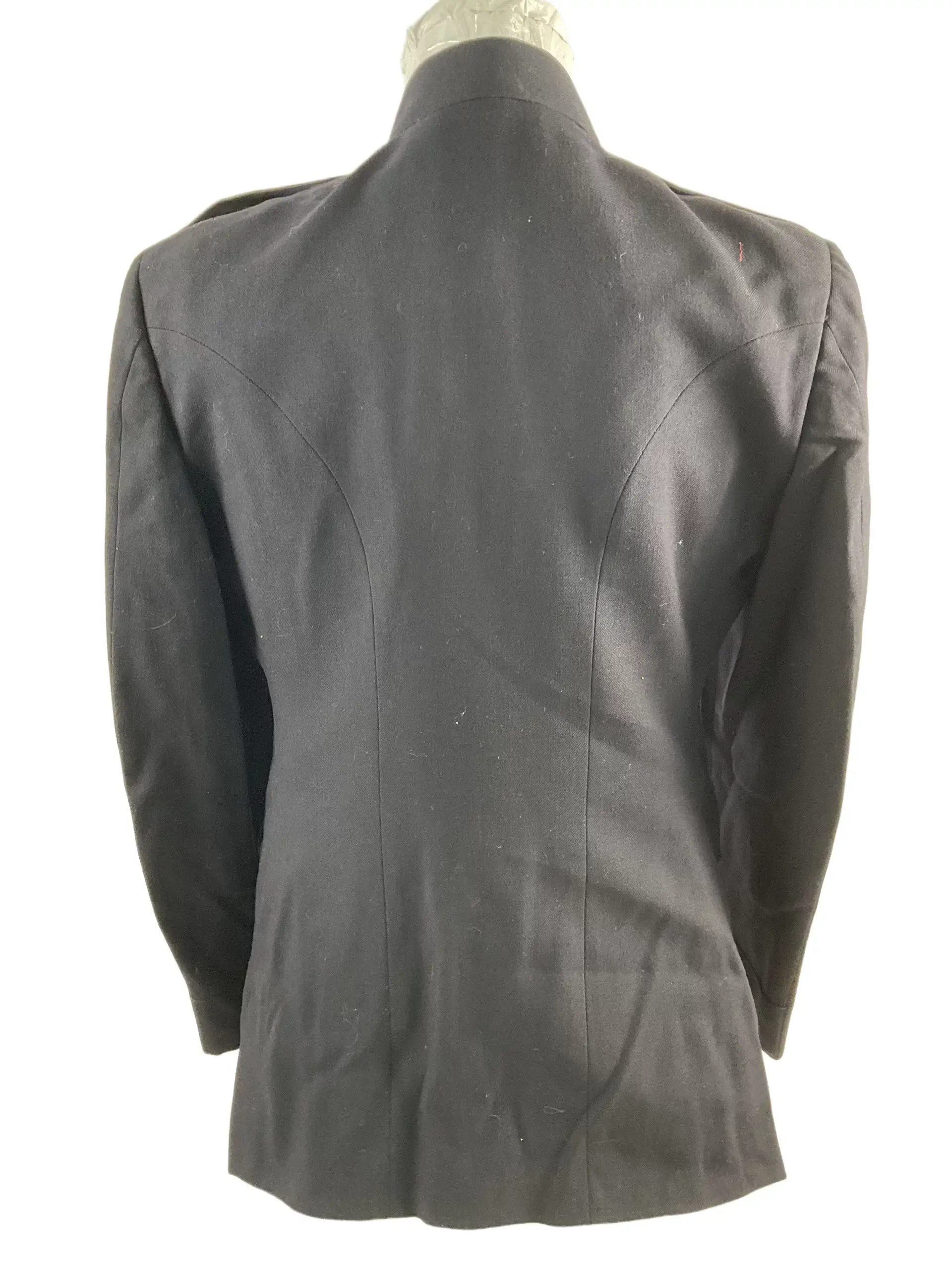 The Canadian Army Blue Patrol Jacket Named Size 36 Dated 1960 is a dress uniform component originally issued to Canadian Army personnel. This jacket is constructed from dark blue wool fabric and tailored in the traditional military style of the period. The garment is marked as a size 36 and features a dated manufacturer’s label from 1960, situating it within the post-World War II and pre