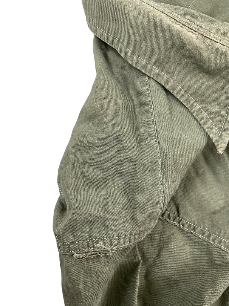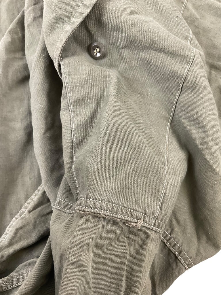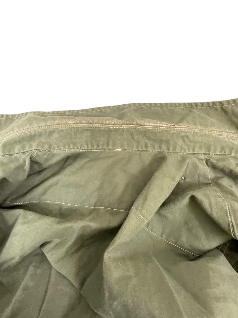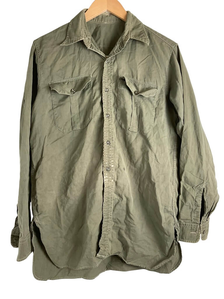 This product is a genuine Canadian Army Bush Dress Shirt, dated back to 1955. This piece of military memorabilia holds a rich historical significance, offering a tangible connection to Canada’s past military operations. It’s composed of durable, high-quality fabric, designed to withstand harsh outdoor conditions. The design is crisp and utilitarian, featuring a camouflage pattern that’s distinctive to the Canadian Army. It is complete with functional pockets and tough buttons, providing a perfect blend of style and practicality. This 1955 dated bush dress shirt is not just an item of clothing, but a symbol of Canadian resilience, courage, and unity. Whether you’re a history enthusiast, a military collector, or someone who appreciates vintage fashion, this authentic Canadian Army Bush Dress Shirt from 1955 is a timeless piece that commands respect and admiration.