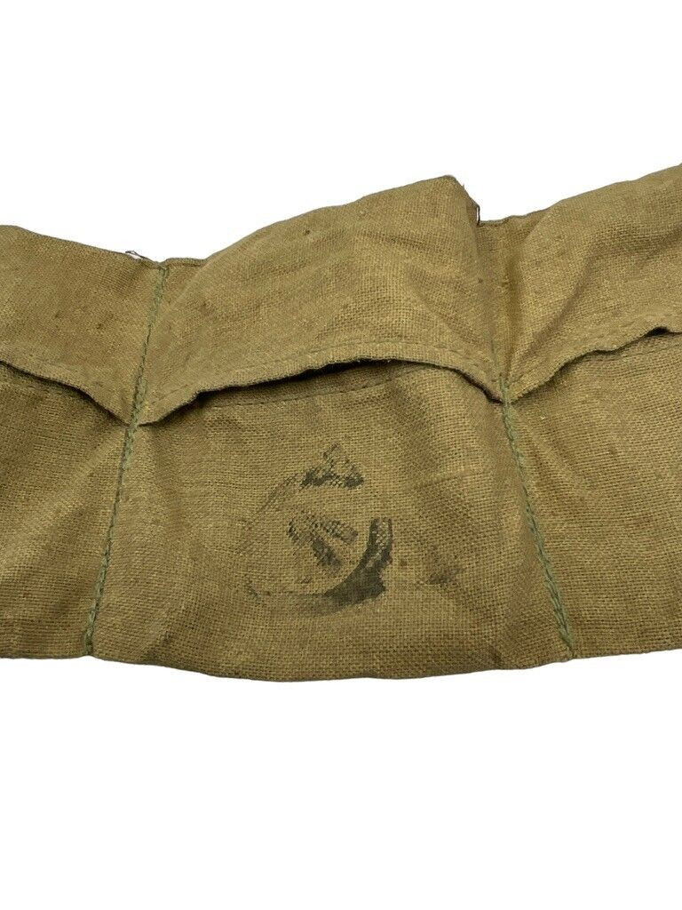 This historically significant Canadian Army cloth bandolier dates back to the post-World War I era, with markings from both 1918 and 1920. It features the distinctive C broad arrow symbol, a mark of Canadian military equipment. Made from durable canvas, this piece was designed to carry ammunition efficiently, freeing soldiers’ hands for combat. The craftsmanship reflects the practical and robust design standards of wartime military gear. These bandoliers were essential for Canadian soldiers, providing easy access to ammunition while ensuring mobility. Collectors and history enthusiasts will find this bandolier a remarkable representation of Canadian military heritage, embodying the resilience and resourcefulness of the Canadian forces during and after the Great War. This artifact not only provides a tangible link to the past but also serves as a poignant reminder of the sacrifices made by soldiers during a significant period in global history.