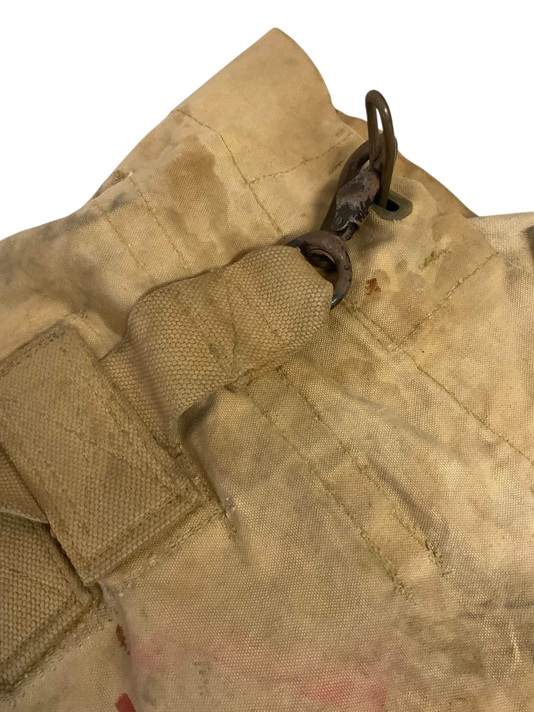 This duffle bag is a rare piece of military history, hailing from the era of the Korean War and bearing the markings of the Canadian Army. Specifically, it is named “RCCS,” which stands for Royal Canadian Corps of Signals – a communications division that played a crucial role in allied operations throughout the conflict. The bag measures 33″ by 22″, providing ample space for storing and transporting gear. Its robust construction is designed to endure harsh conditions, reflecting the tough realities of war. With its authentic markings and period-specific design, this duffle bag offers a tangible connection to Canada’s military past. It is a must-have for collectors of militaria or enthusiasts of historical artifacts.