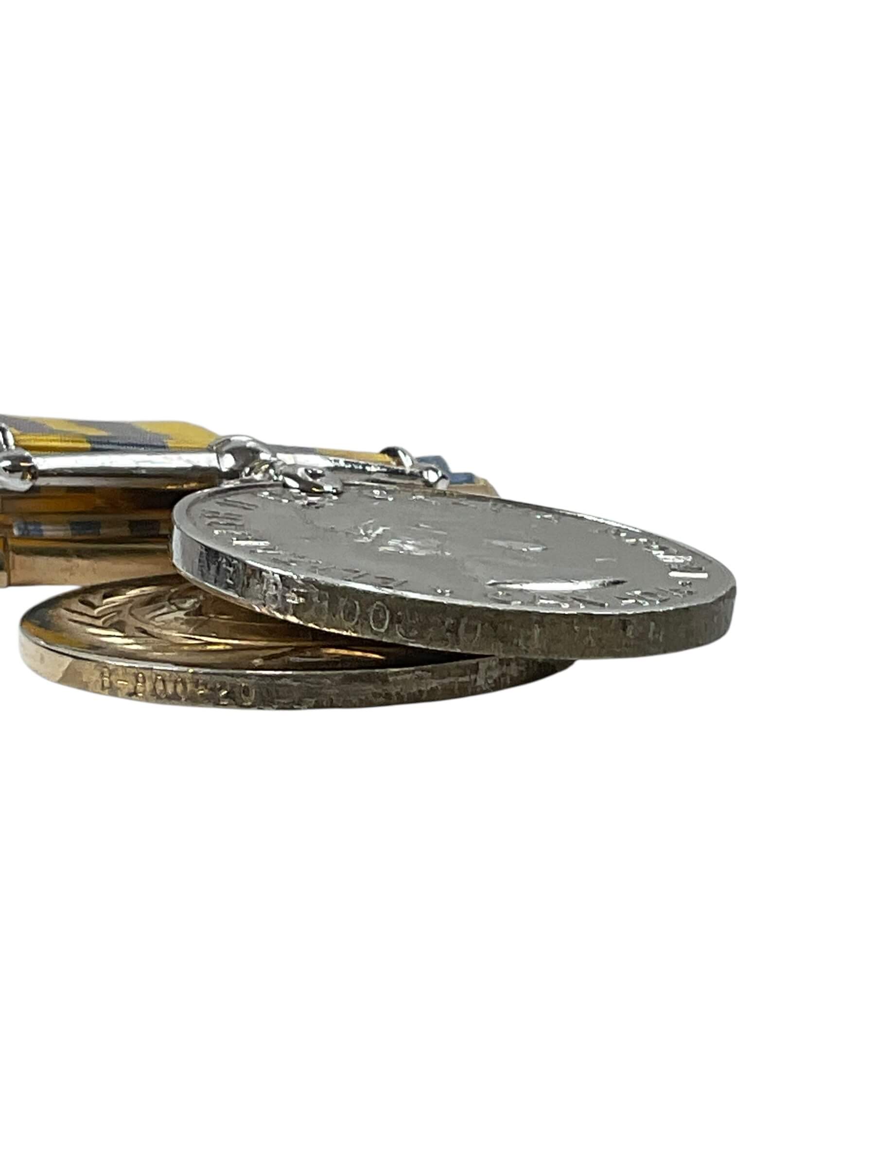 The Canadian Army Korean War Medal Group Named B-800820 PARTIALLY ERASED consists of original service medals awarded to a Canadian soldier who served during the Korean War era. The group typically includes the Korea Medal, the United Nations Korea Medal, and, depending on service history, the Canadian Volunteer Service Medal for Korea. Each medal is crafted to official specifications, bearing appropriate insignia, ribbons, and mounting as issued at the time. The medals in this group are named to service number B-800820, with the naming details partially erased, which is noted for accuracy in identification and collector reference. These medals commemorate the recipient’s participation in the Korean conflict, representing an important period in Canada’s military history between 1950 and 1953 as part of the United Nations forces. The items are of interest to collectors and researchers specializing in Commonwealth military artifacts and the documentation of Canadian service personnel during the Korean War.