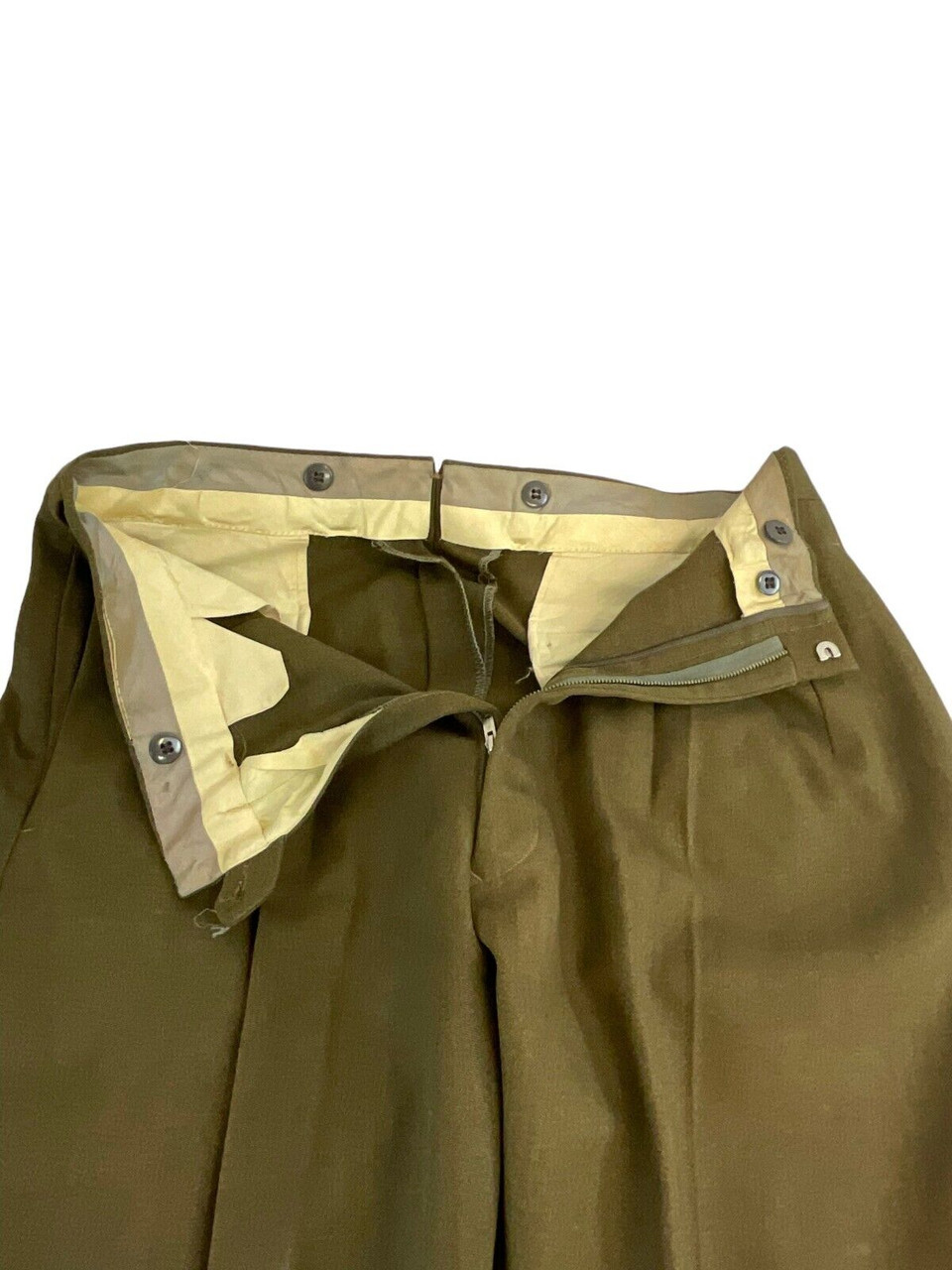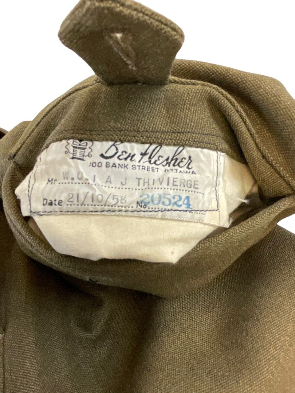 This listing features a rare and authentic piece of military history: Canadian Army Officers’ Named Service Dress Trousers from 1958, tailored to a 32-inch waist. These trousers were designed with attention to detail and quality typical of military attire, reflecting the standards of the Canadian Army during the late 1950s. The pants are named, adding a personal and historical touch, and are likely linked to a specific officer, making them a unique collector’s item. The trousers are well-preserved, offering a glimpse into the sartorial style and disciplined craftsmanship that defined the service dress of that era. Ideal for military history enthusiasts, collectors of vintage military uniforms, or those interested in authentic period clothing, these trousers represent an intriguing blend of functional design and historical significance. Don’t miss the chance to own a piece of Canadian military heritage with these 1958 dated service dress trousers.